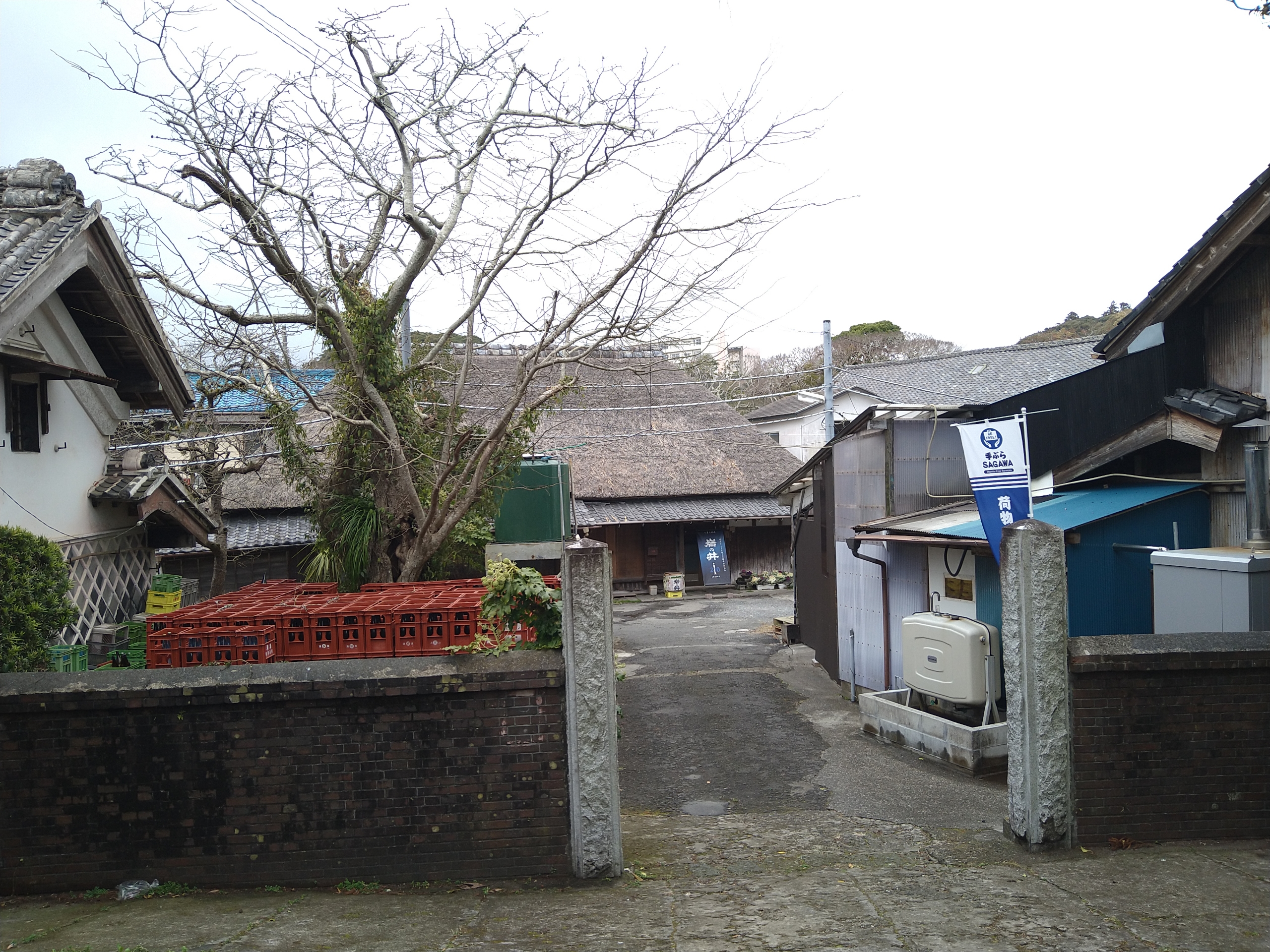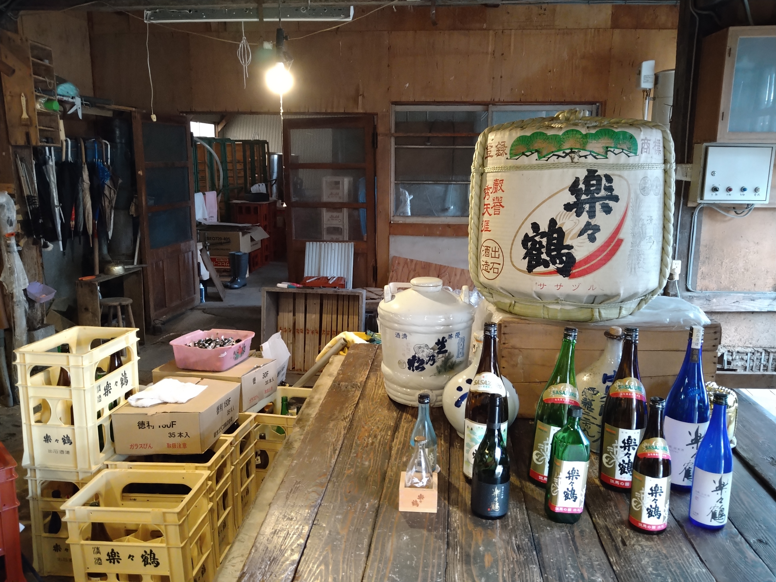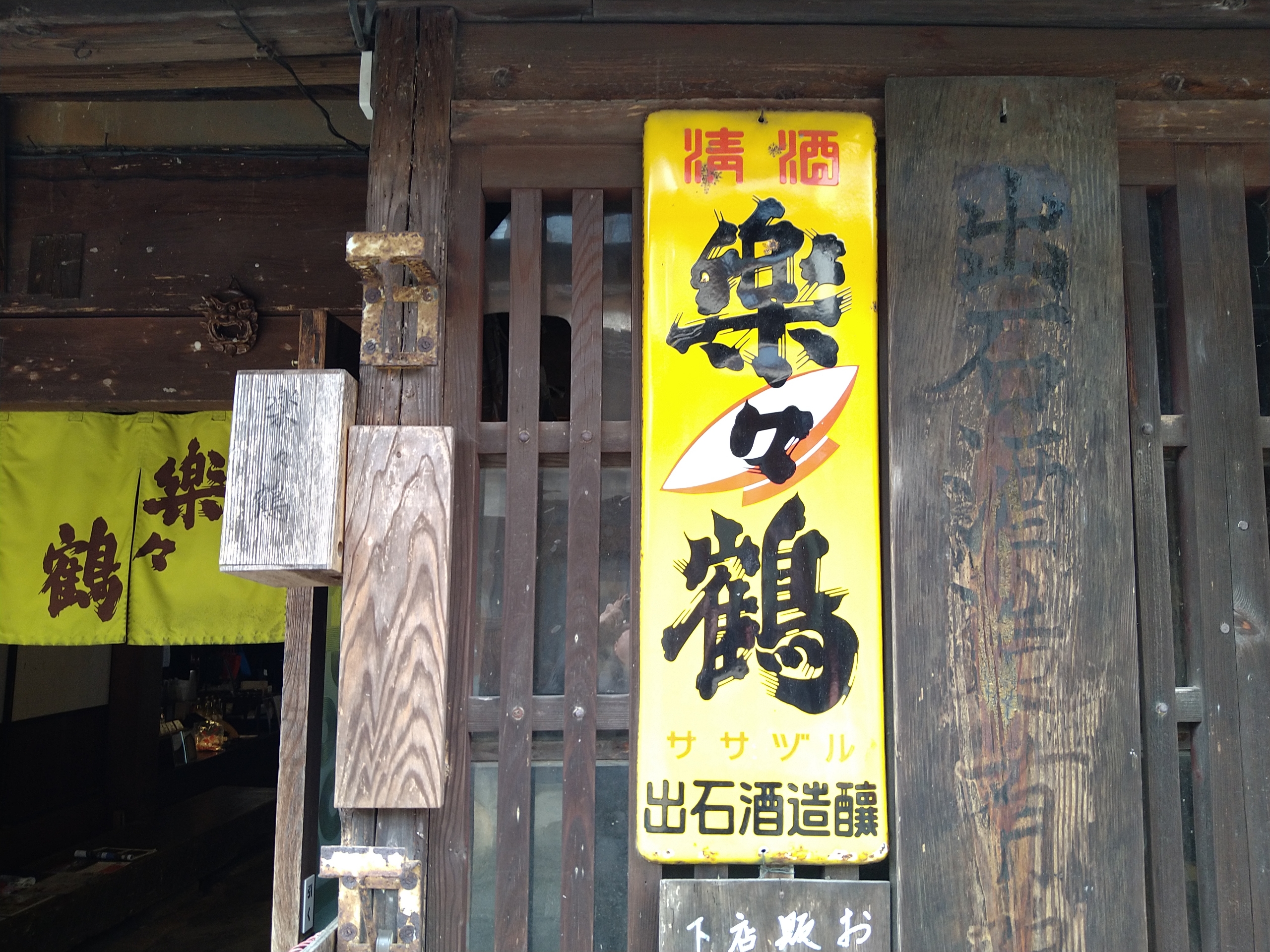 酒蔵の入口には楽々鶴の琺瑯看板が掲げられていました。