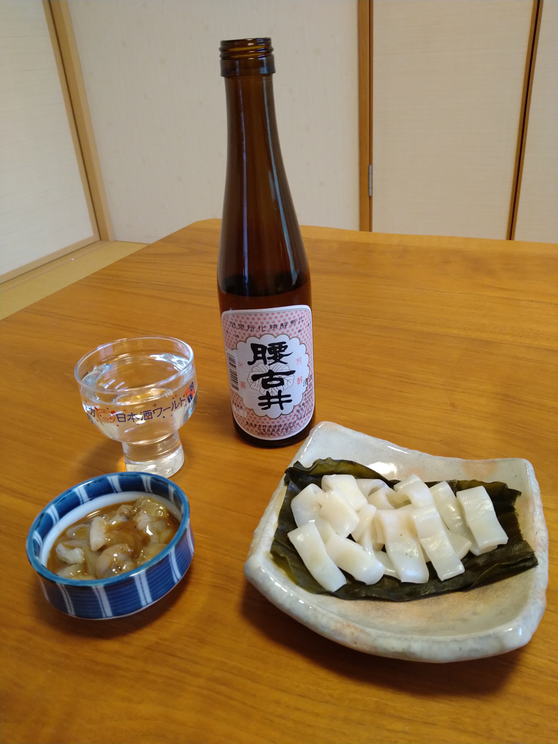 千葉地酒・腰古井の上撰と肴は地物・千倉産のスルメイカ