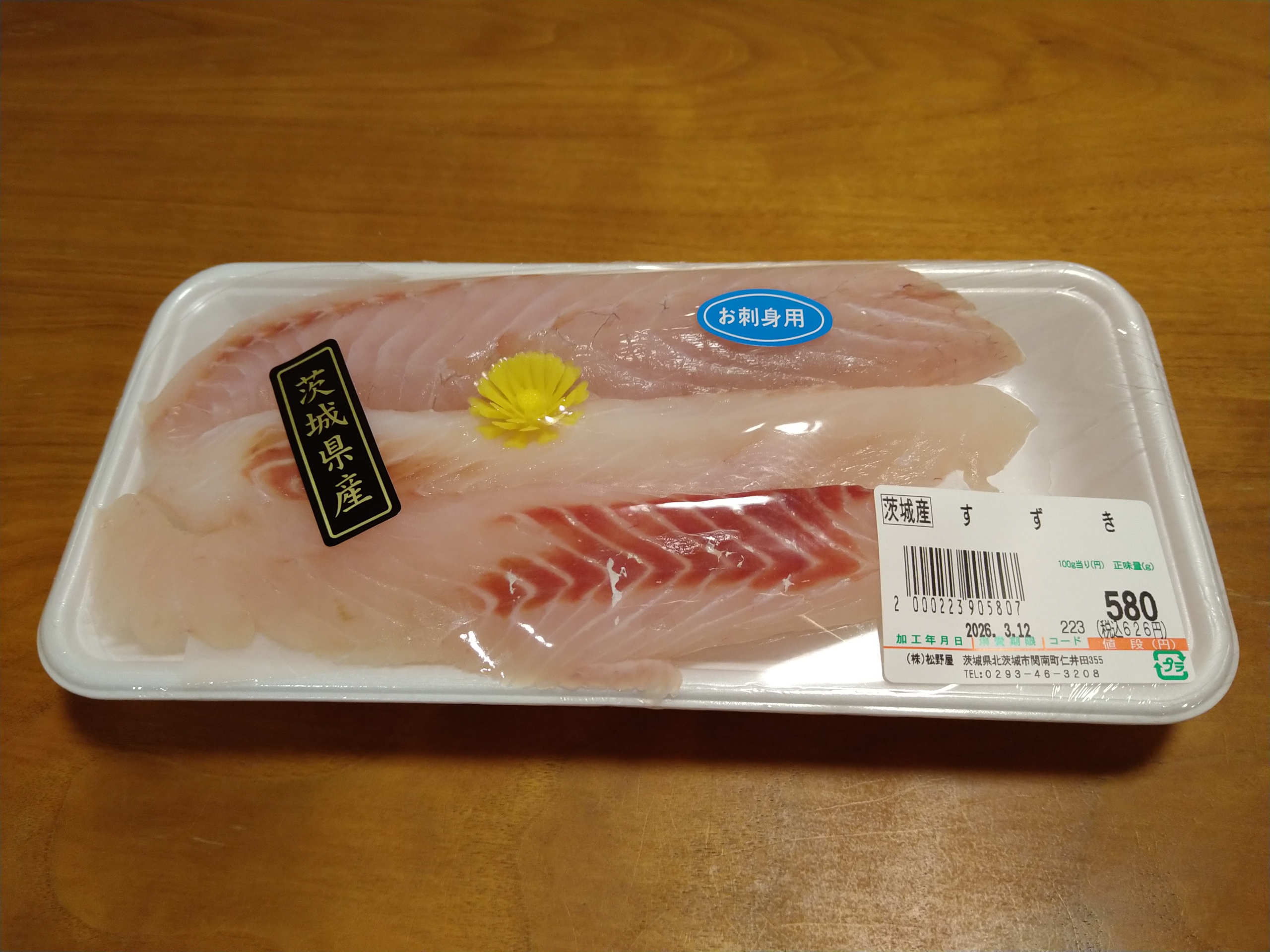 今日は茨城県北茨城市の松野屋で買った茨城県産のすずきの刺身です。
