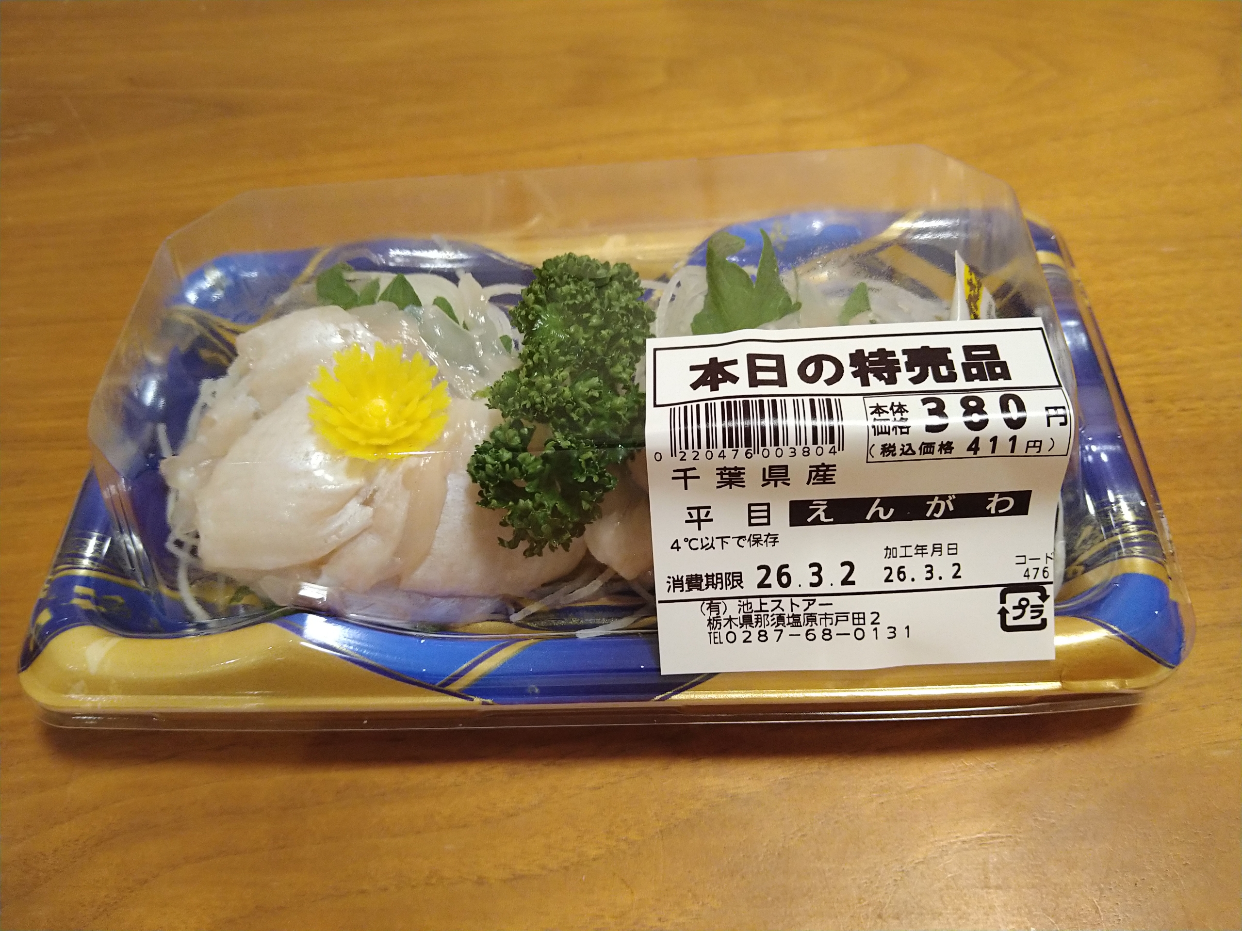 今日は栃木県で人気の個人経営のご当地スーパー・池上ストアーで買った千葉県産の平目えんがわです。