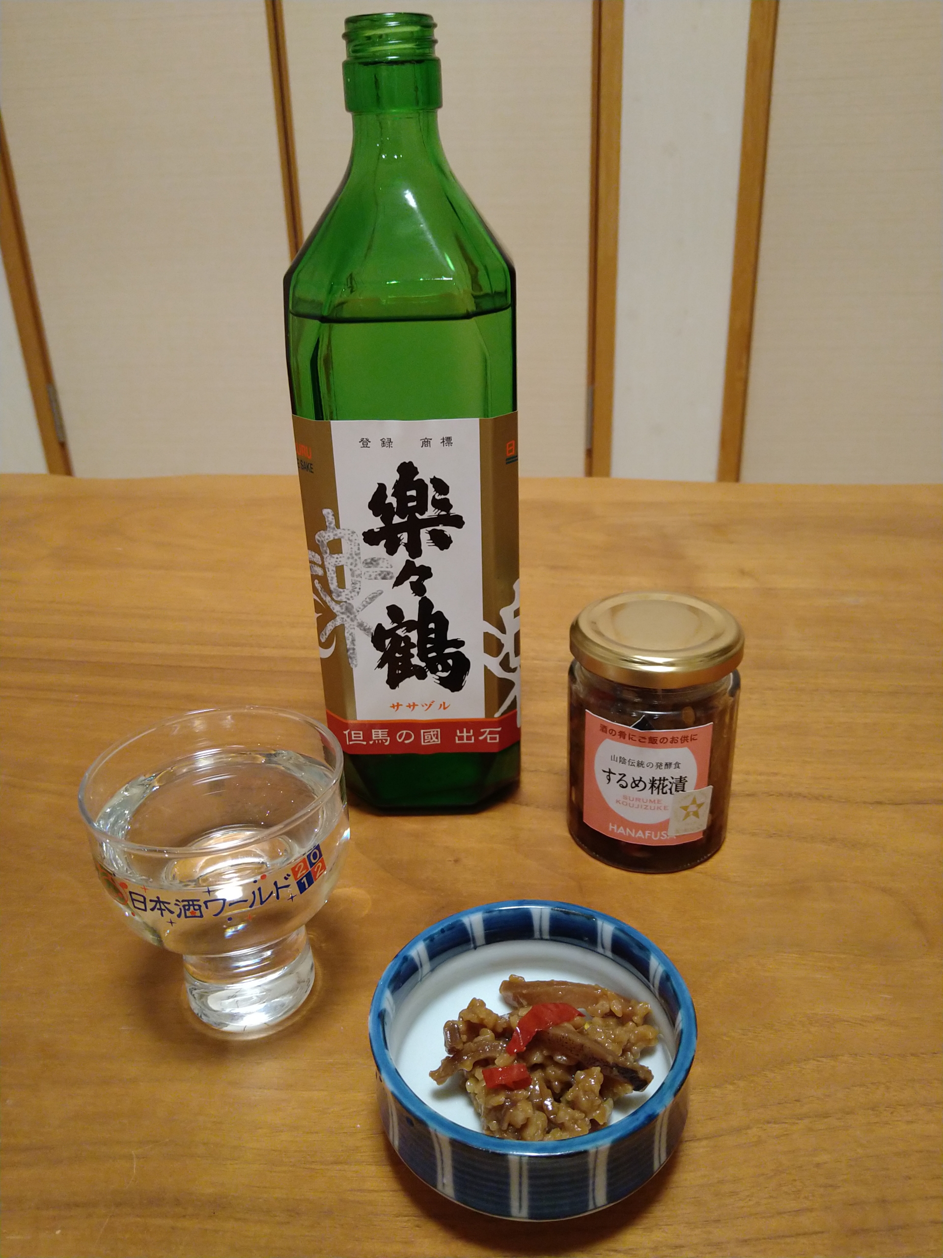 但馬の地酒・楽々鶴の原酒と肴はするめ糀漬