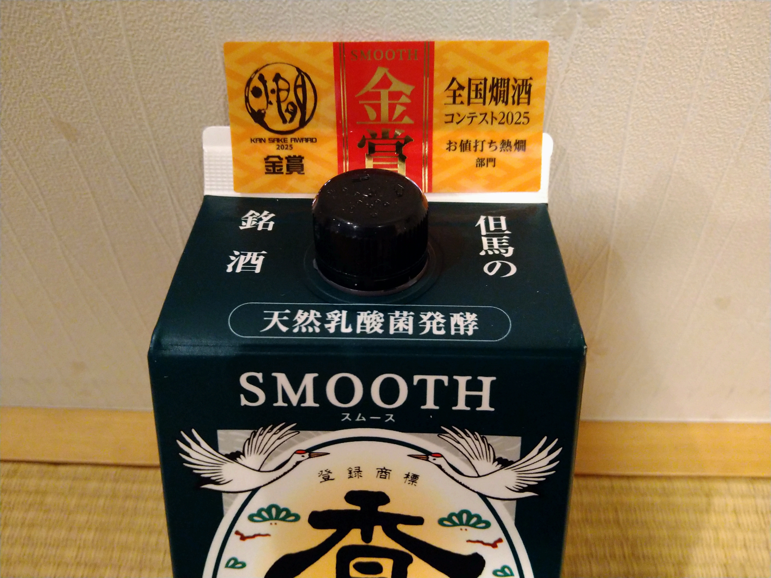 この酒、全国燗酒コンテスト2025で「お値打ち熱燗部門」において金賞を受賞しています。飲んだ感想はやや淡麗のキリッとした辛口で辛さの中に心地良い酸味と適度な旨味が感じられ、後味はスッキリと飲みやすくとても美味しかったです。やっぱ香住鶴の酒は一番ランク下の酒でも美味いねぇ〜◎
