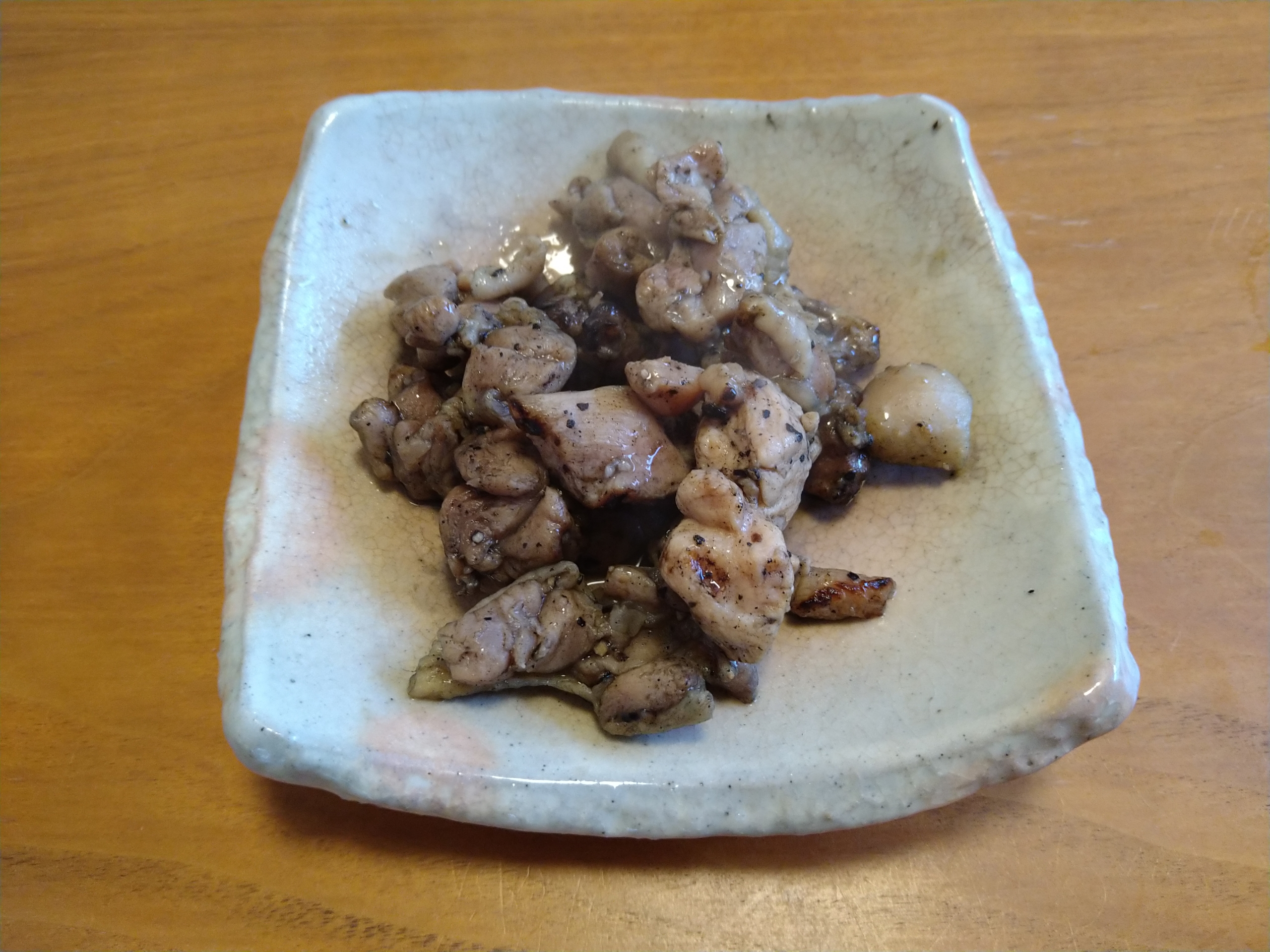 今日の酒の肴は国産親鶏をスパイスに絡めて焼き上げたひね焼きです。
