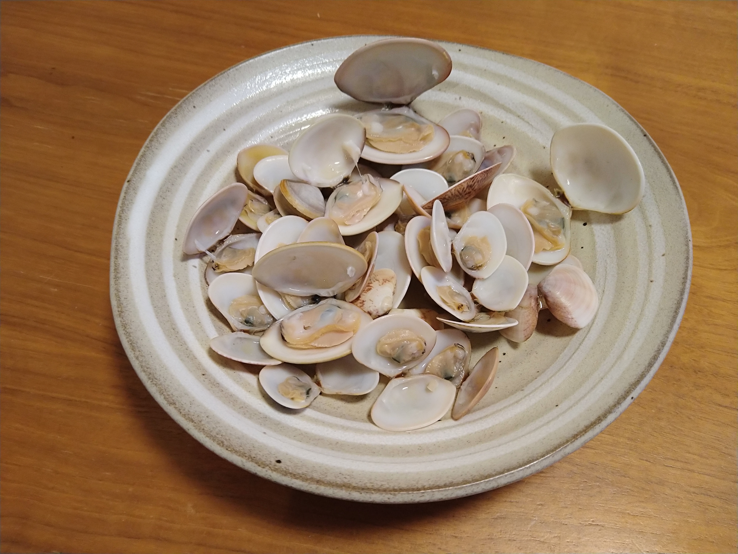 小玉貝は酒蒸しにしました。こちらもしっかりと貝に旨味があって美味い!自分で採っただけに更に美味しく感じます。^^ 酒もすすみますねぇ〜