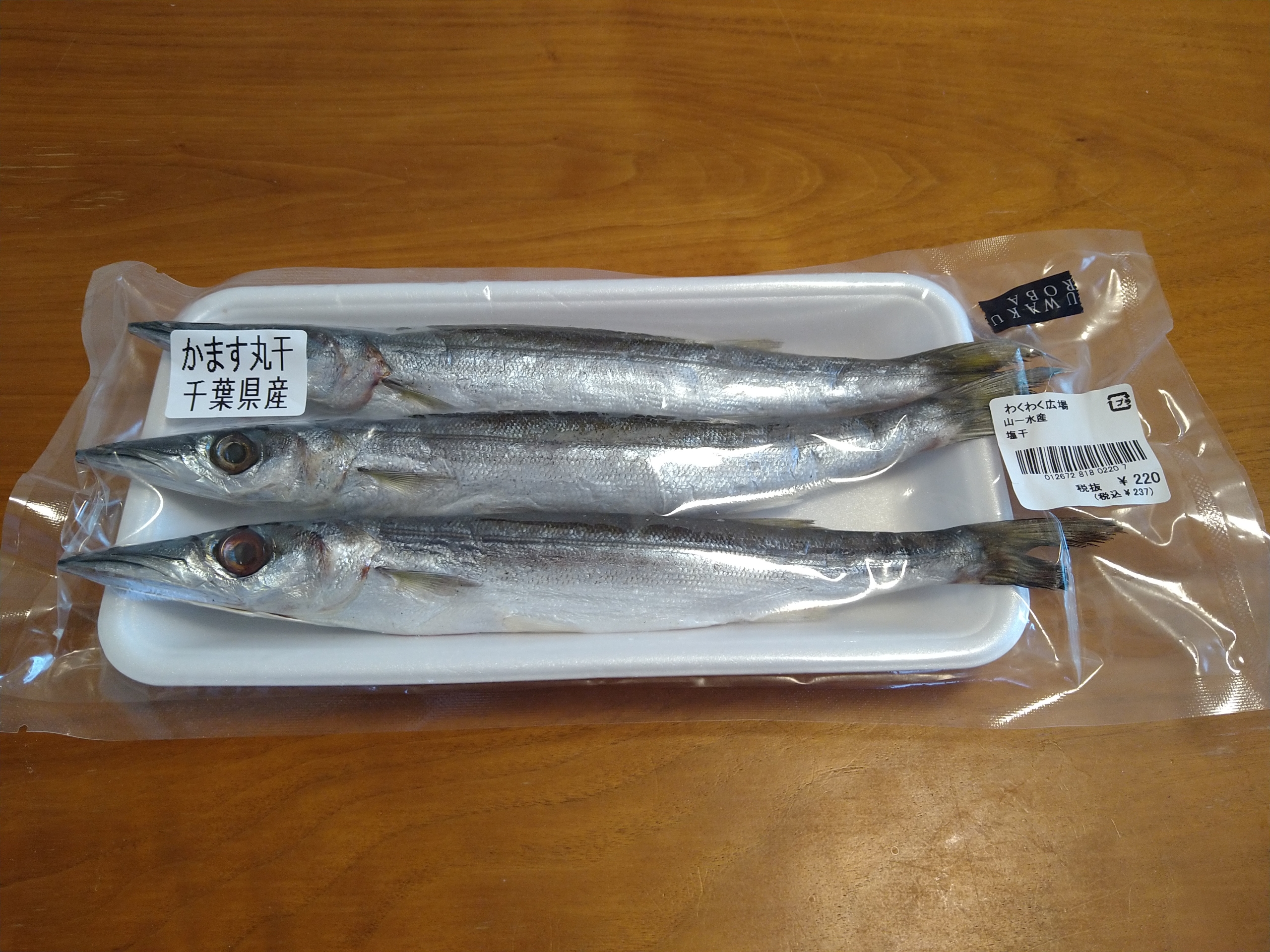 今日の酒の肴は千葉県産のカマス丸干しで3尾237円と1尾79円の激安だったので買いました。いすみ市の山一水産と言う会社が製造しています。
