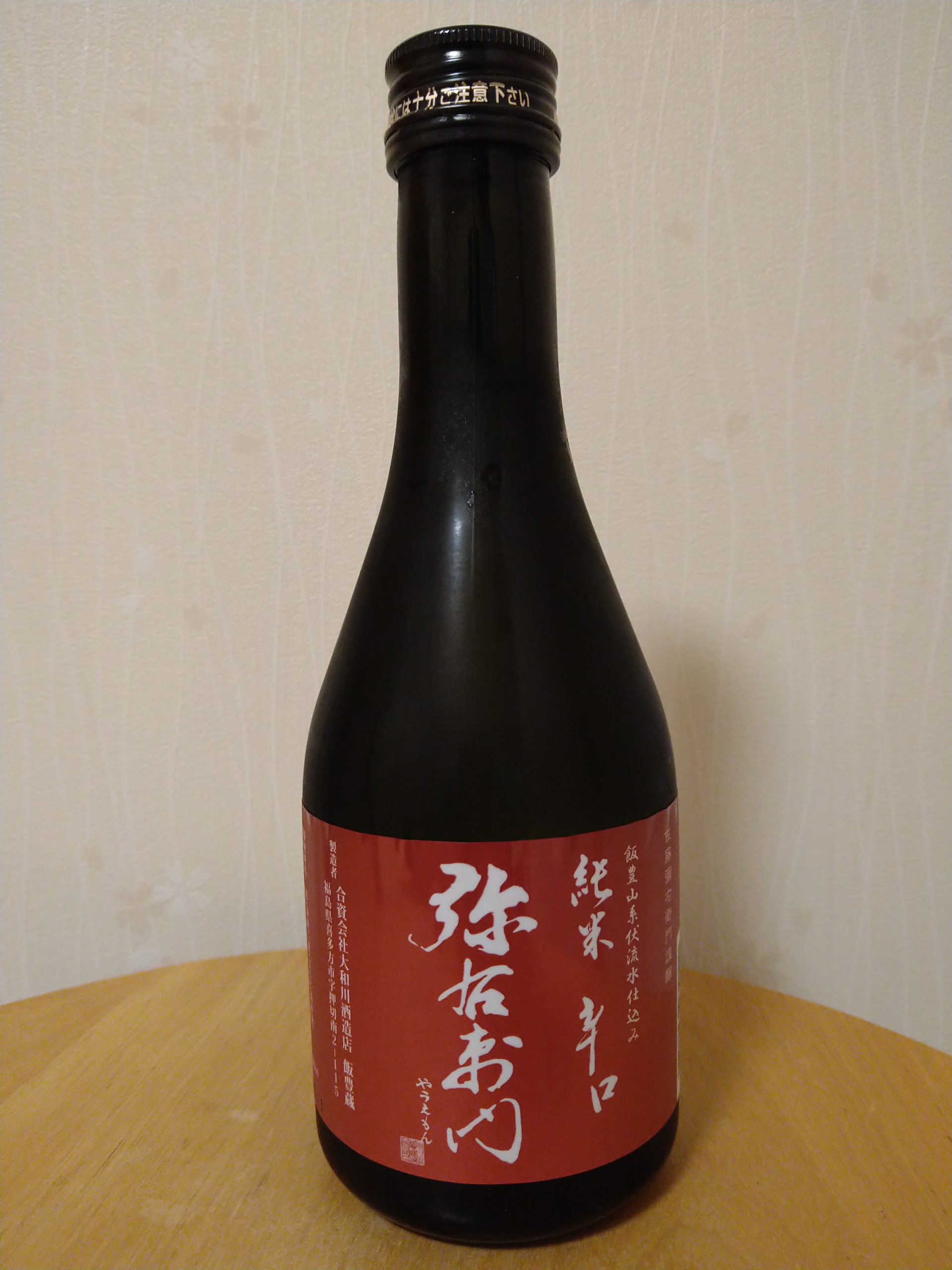 今日は福島県喜多方市のコープベスタひがし店で660円で購入した、同市の酒蔵・大和川酒造店の酒「弥右衛門 純米辛口」を冷酒で飲みました。酒は精米歩合60%のやや削り込んだ米で仕込んだ純米酒で、飲んだ感想はやや淡麗の少し酸味のある辛口の酒で後味に少し苦味があって旨味は少なめですがまぁまぁ美味しかったです。