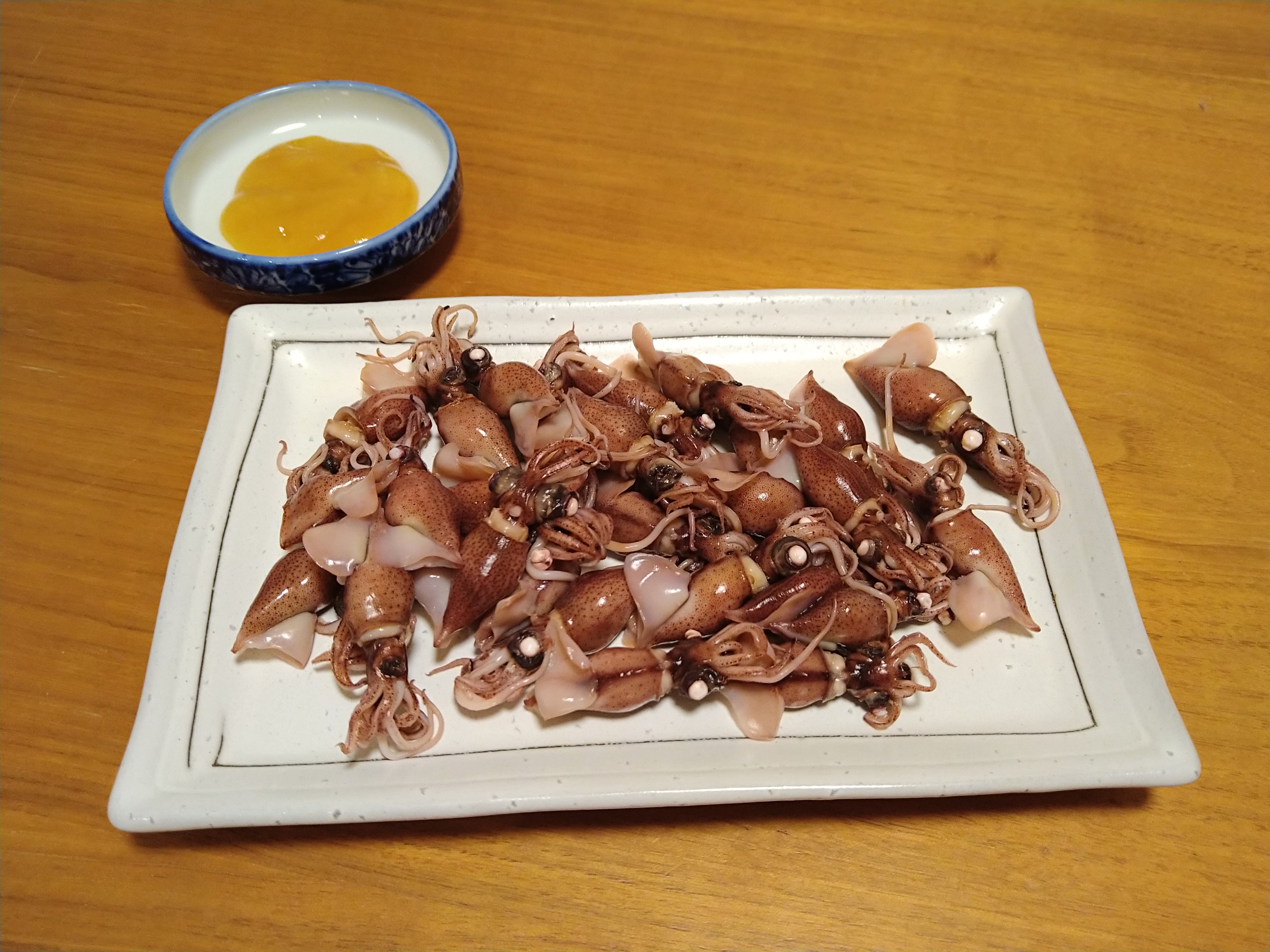 今日の酒の肴はこれからがシーズンの兵庫県産のボイルホタルイカです。