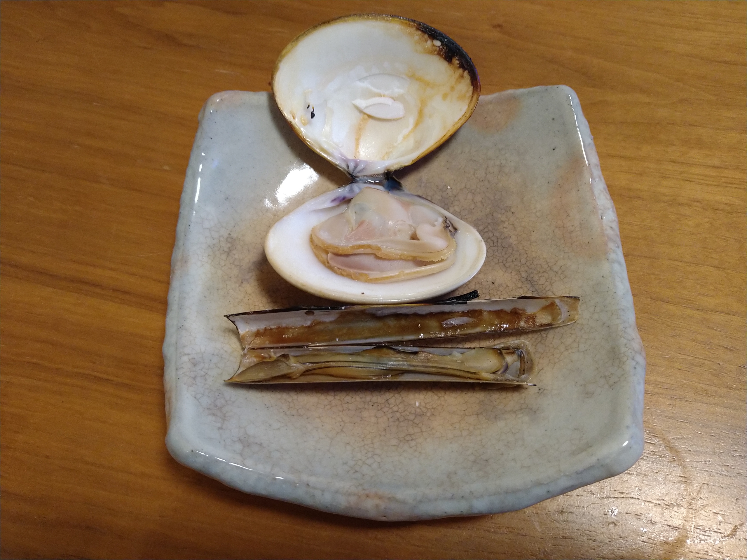 次に大きめハマグリとマテ貝はグリルで焼いて焼き貝にしました。マテ貝はちょっと食感や味がトリガイに似た様な感じがして旨味もあって美味しいです。ハマグリは濃い貝の旨味があって最高に美味い!素晴らしい〜 酒が進む味わいです。
