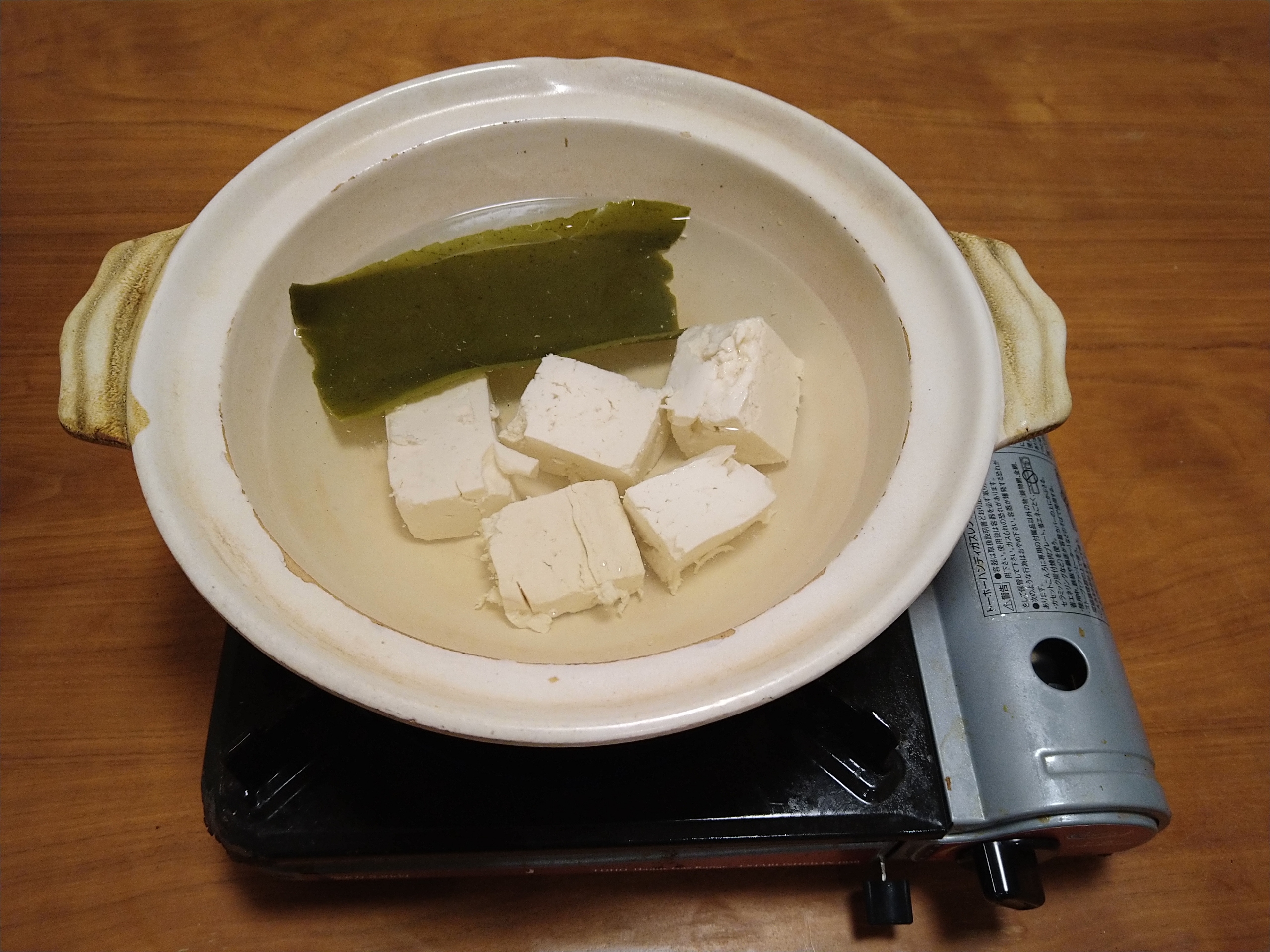 ここの木綿豆腐は両面がボコボコしてたり亀裂が入ってたりと手造り感があって、木綿豆腐やけどフワフワとした食感で湯豆腐にするとメチャ美味しいんです。
