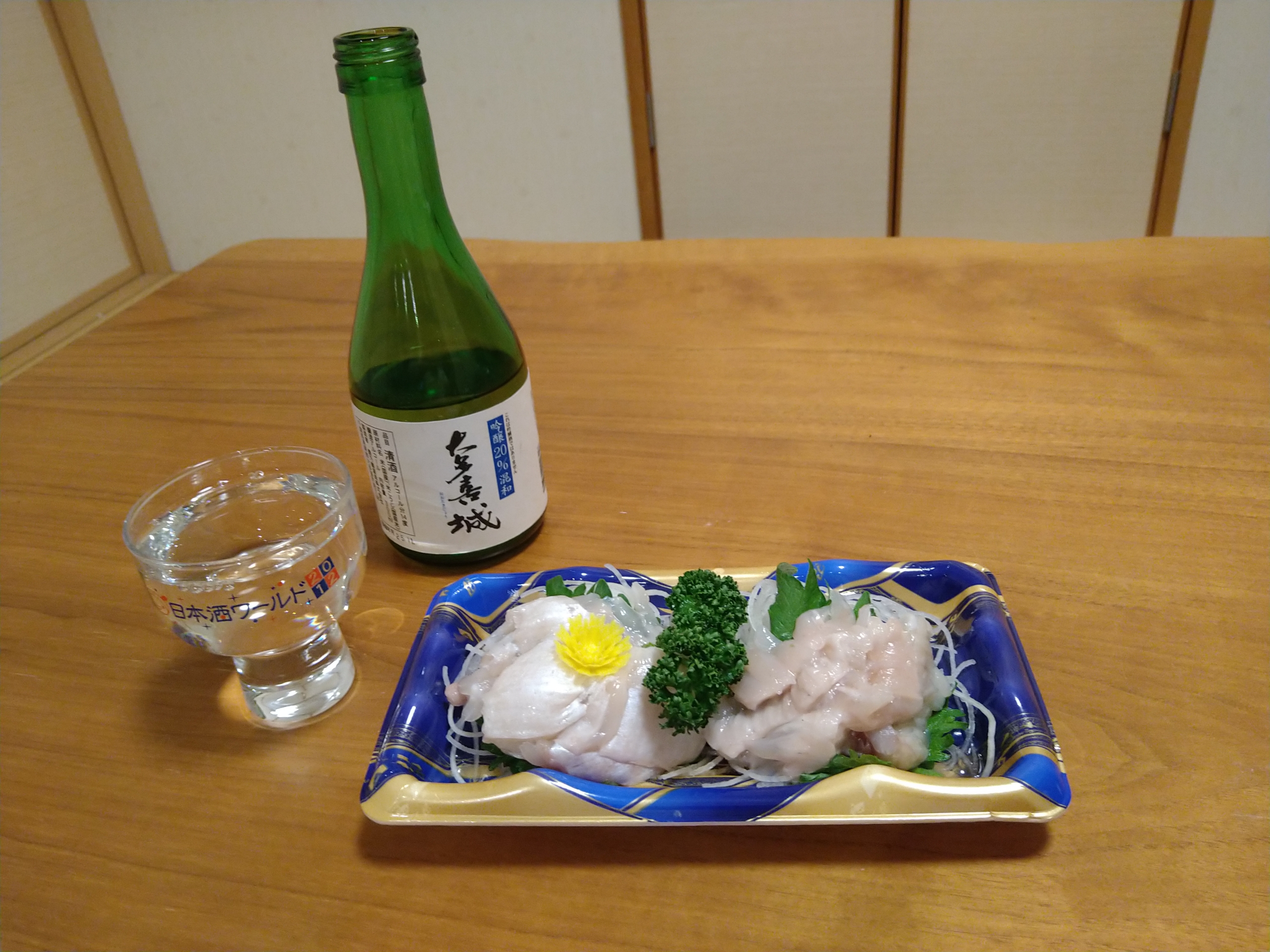千葉地酒・大多喜城の吟醸酒混和の普通酒と肴は千葉県産の平目えんがわ
