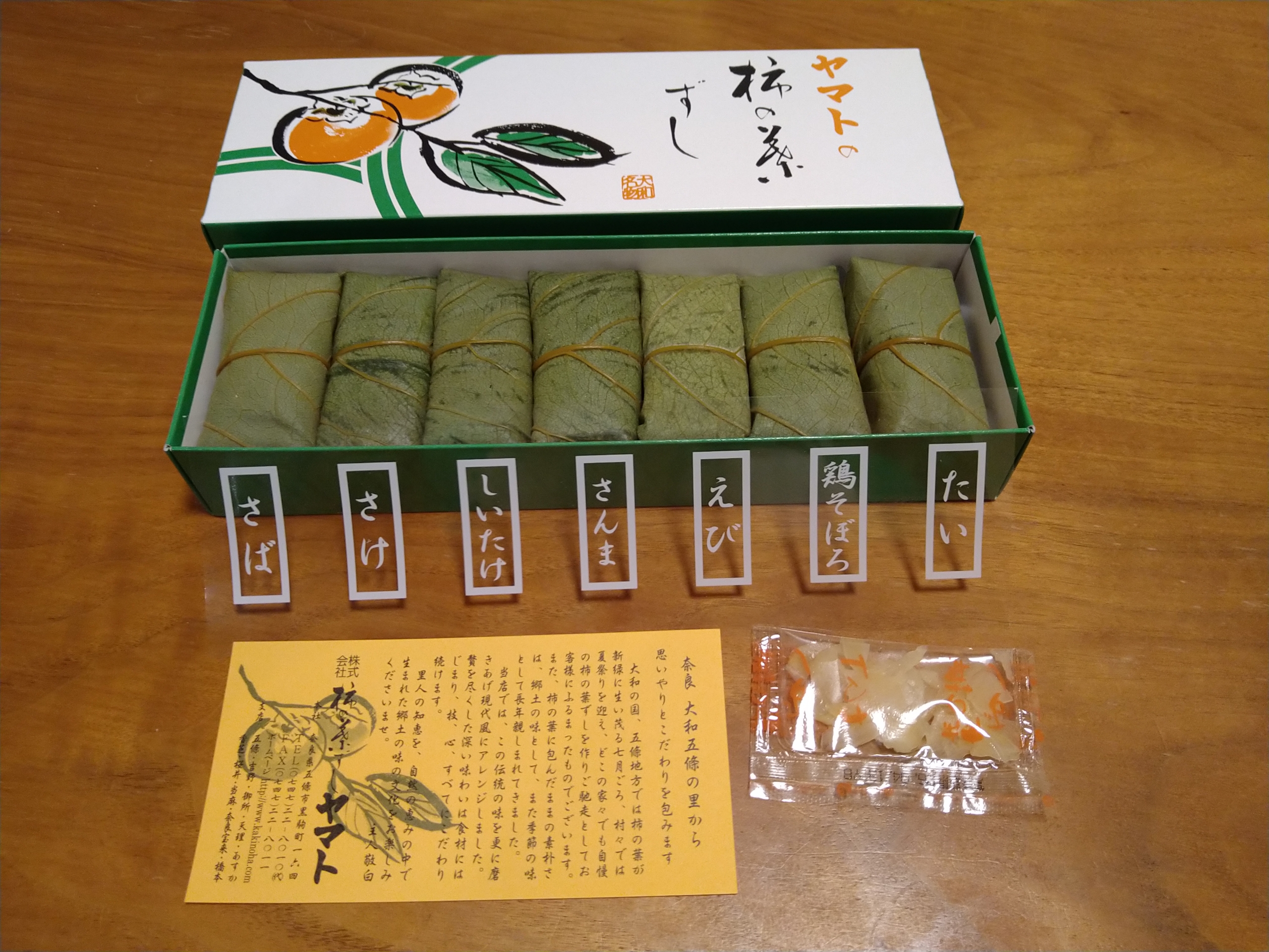 味七色で7つ全ての味が違い7種類の柿の葉寿司が入っています。