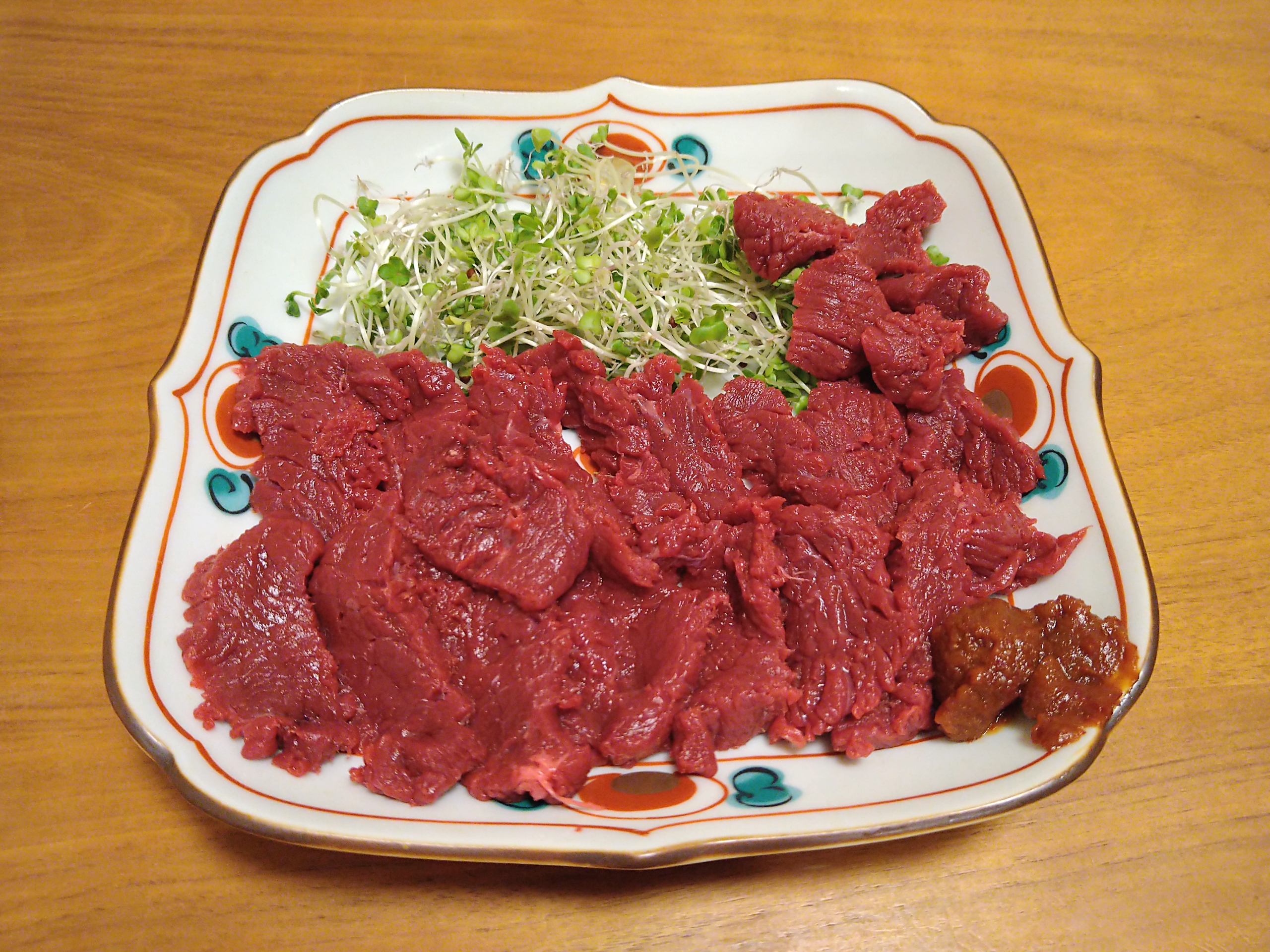 今日の酒の肴は久々に会津畜産の会津馬刺しです。部位は肩の赤身肉です。
