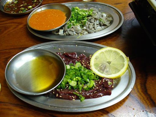 まずはいつもどうりってか、今年初なので豪勢に焼き物系を片っ端から、プップギ・心臓・グレス・ハチノス・ヨントン・ミノサンド・ネック・テッチャン・ウルテ・子袋・ハラミすじなどなど、おもっきし注文した。