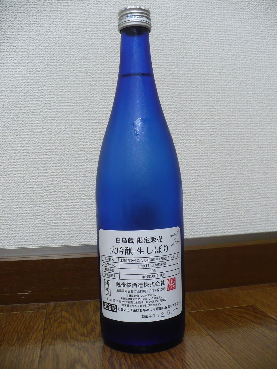 「今日の晩酌!VOL.885」今日は友人が日帰りバスツアーで新潟に行った時にトイレ休憩で立ち寄った阿賀野市の酒蔵・越後桜酒造で買った酒を頂いたので飲んだ!飲んだ酒は「越後桜・大吟醸・生しぼり」です。大吟醸なので冷やして飲んだが、味は吟醸香がプンプン漂うやや淡麗な辛口の酒で後味にはアルコール辛さと苦味が結構強く感じます。でも!旨みもそこそこあって香りはくどいですが、結構美味しかったです。酒飲み始めの1杯目に飲むのがベストかなぁ〜