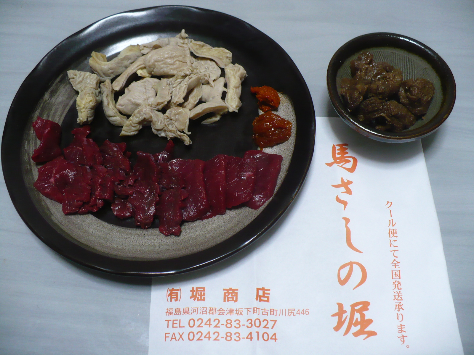 今日の酒の肴は会津坂下町の堀商店で購入した馬刺しと馬モツの湯引き・そして馬肉の煮込みです。いつもながらですが、会津の馬刺しメチャうまいです!辛味噌を醤油に溶いて食べると最高〜 今日も飲み過ぎてしまった・・・(汗)