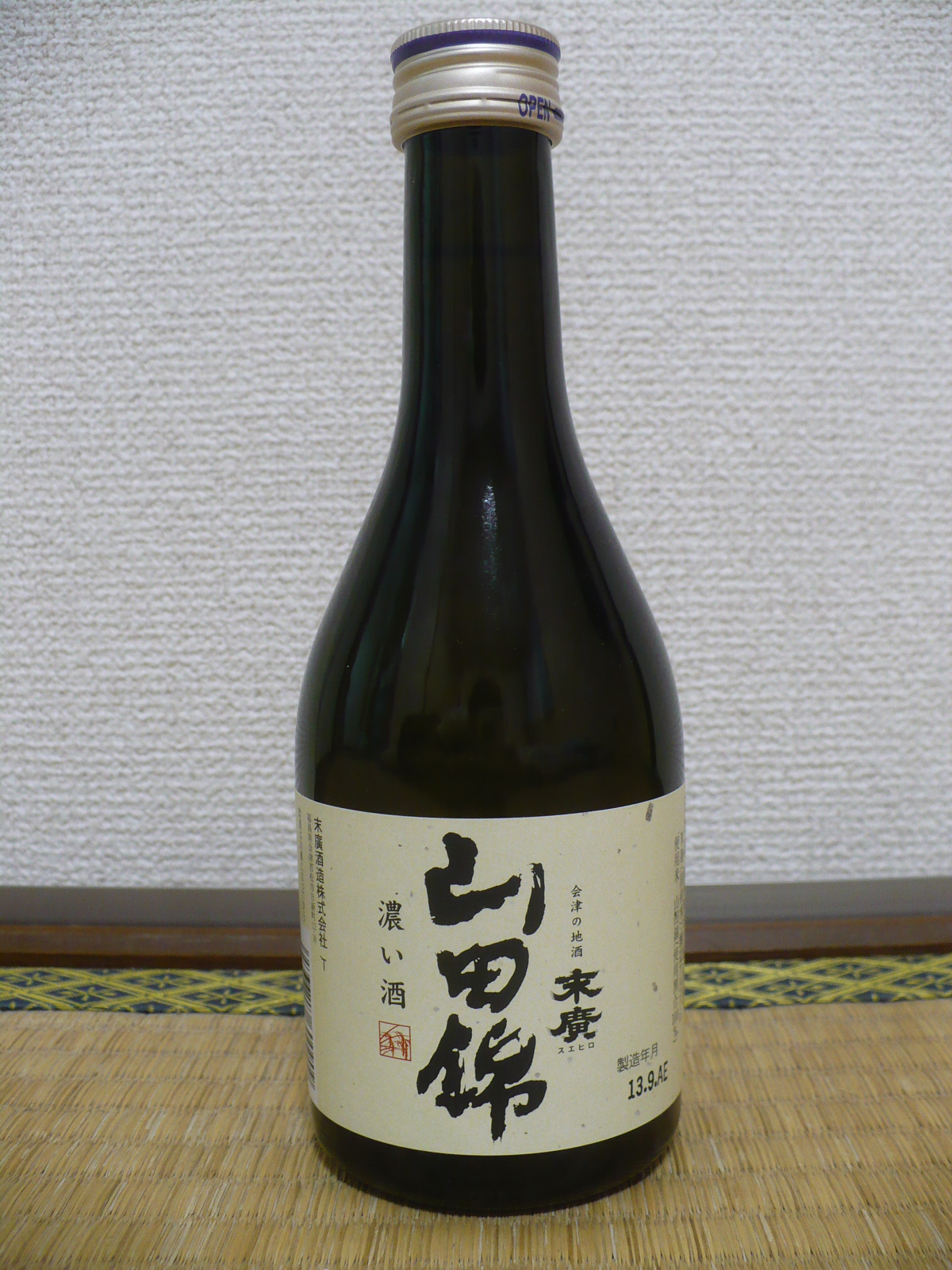 「今日の晩酌!VOL.1022」今日は福島県会津若松市にある末廣酒造の嘉永蔵のショップで441円で購入した酒「末廣・山田錦・濃い酒」を飲みました。この酒、酒造好適米の最高峰である山田錦100%使用した酒ですがラベルには特定名称酒の表示はありません。だいたい山田錦100%で仕込まれた酒は殆ど特定名称酒ですが、この酒は末廣酒造のHPの中でも普通酒の所で紹介されているので普通酒の様です。珍しい・・・ 確か石川県の菊姫も昔、山田錦の普通酒を造っていたが・・・ ちょっと贅沢な普通酒ですが、飲んだ感想は濃醇で最初ほんのり甘く感じますが、アルコール度数が18度台と少し高いこともあって後味には結構舌に残る強いアルコール辛さがあります。でも その後にはしっかりとした濃い米の旨みが感じられる酒で普通酒ながらとても美味しい酒でした。