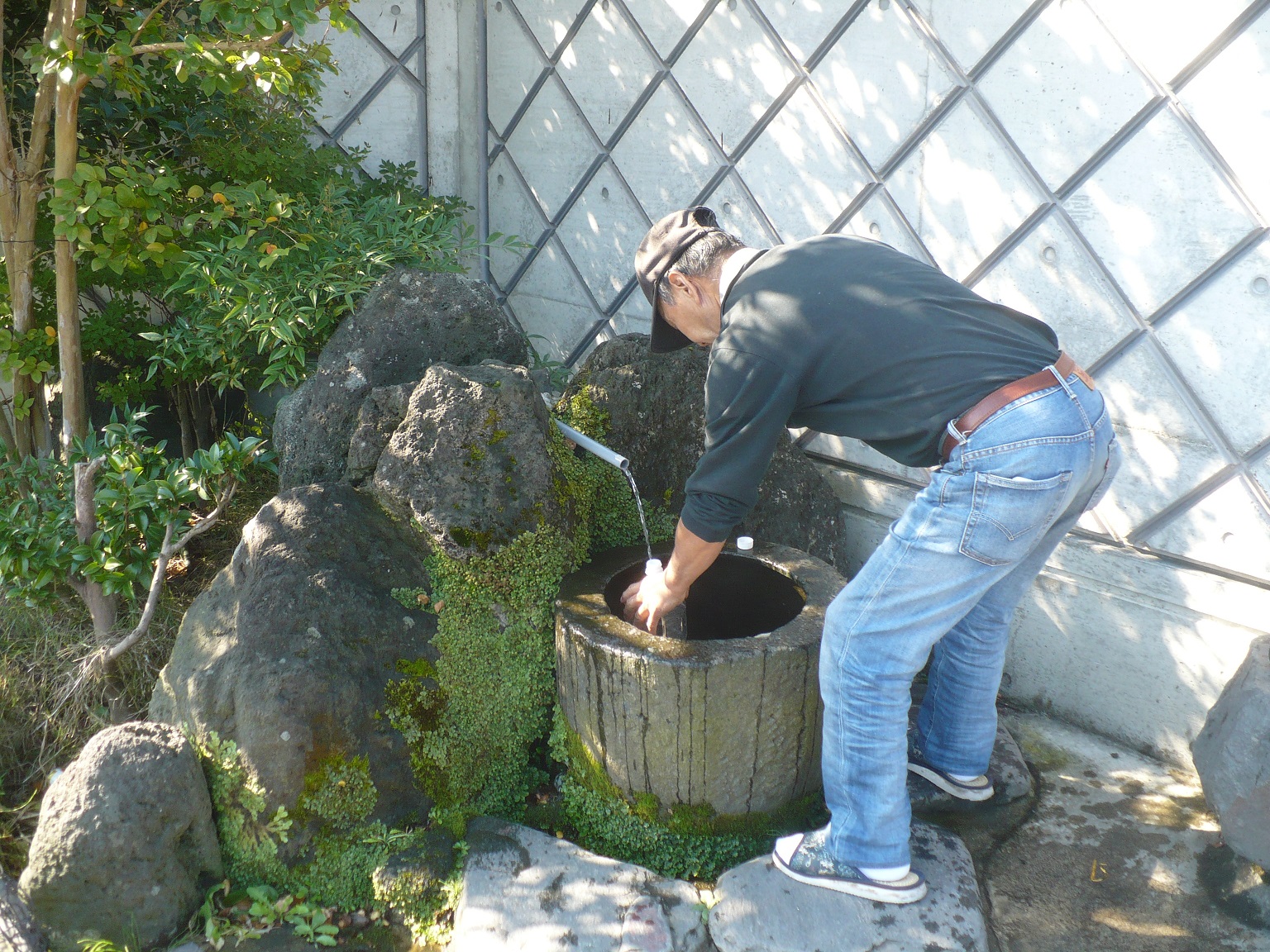 画像は末廣酒造の博士蔵で、博士蔵には門の横に仕込水の湧水が湧いてて自由に汲む事ができます。私が訪れた時も2名ほど先客が居てペットボトルにたくさん水を汲んでいました。