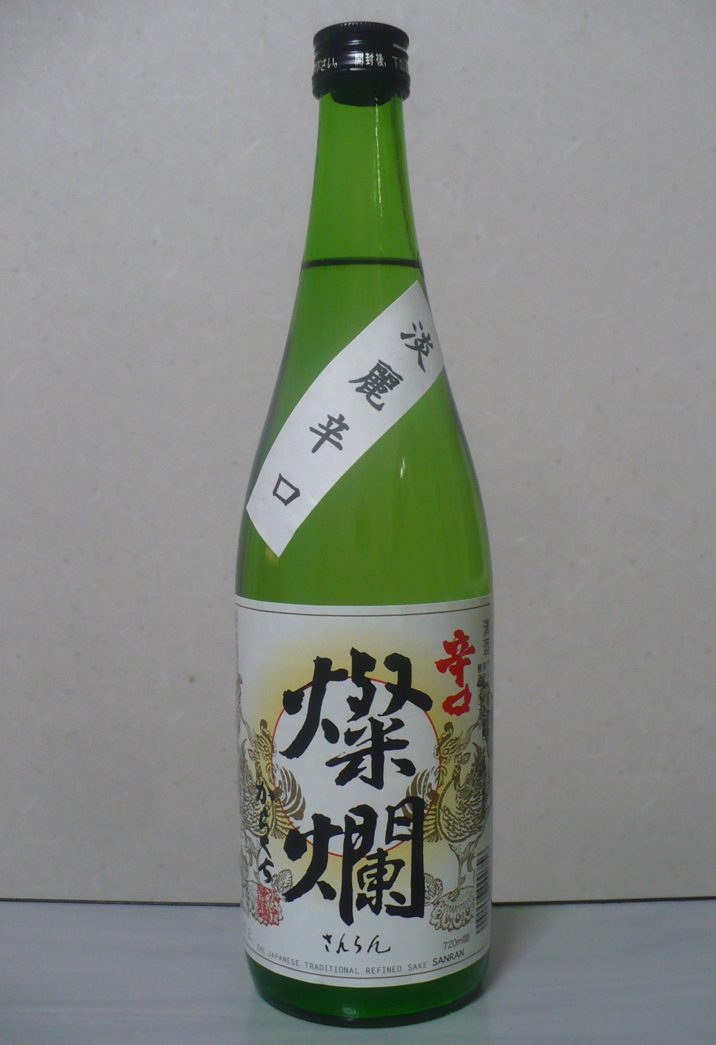 「今日の晩酌!VOL.1251」今日は日曜日に栃木県益子町にイチゴ狩りに行った時に立ち寄った同町の酒蔵・外池酒造店の直売所で1000円で購入した酒「燦爛・辛口」を飲みました。この酒、ラベルの表示を見る限りでは糖類無添加の普通酒のようです。飲んだ感想はやや淡麗の酒でラベルに「辛口」と書かれているが、思ったほど辛くなくて後味には甘ささえ感じます。そして飲んでて「何かカビ臭いなぁ〜」と思い始め、でも酒にはカビ臭は無く何かと思えばビンの表面が物凄くカビ臭かったのです。おそらく壜詰後の保管場所に湿気があるか、壜の表面が結露したまま放置されてたのかもしれませんね。壜はカビ臭く不快ですが、酒は辛口の割りにあまり辛くなかったが(もしかしたら当社比で辛口なのかも・・・)普通酒ながらしっかりとした味のある酒で美味しかったです。