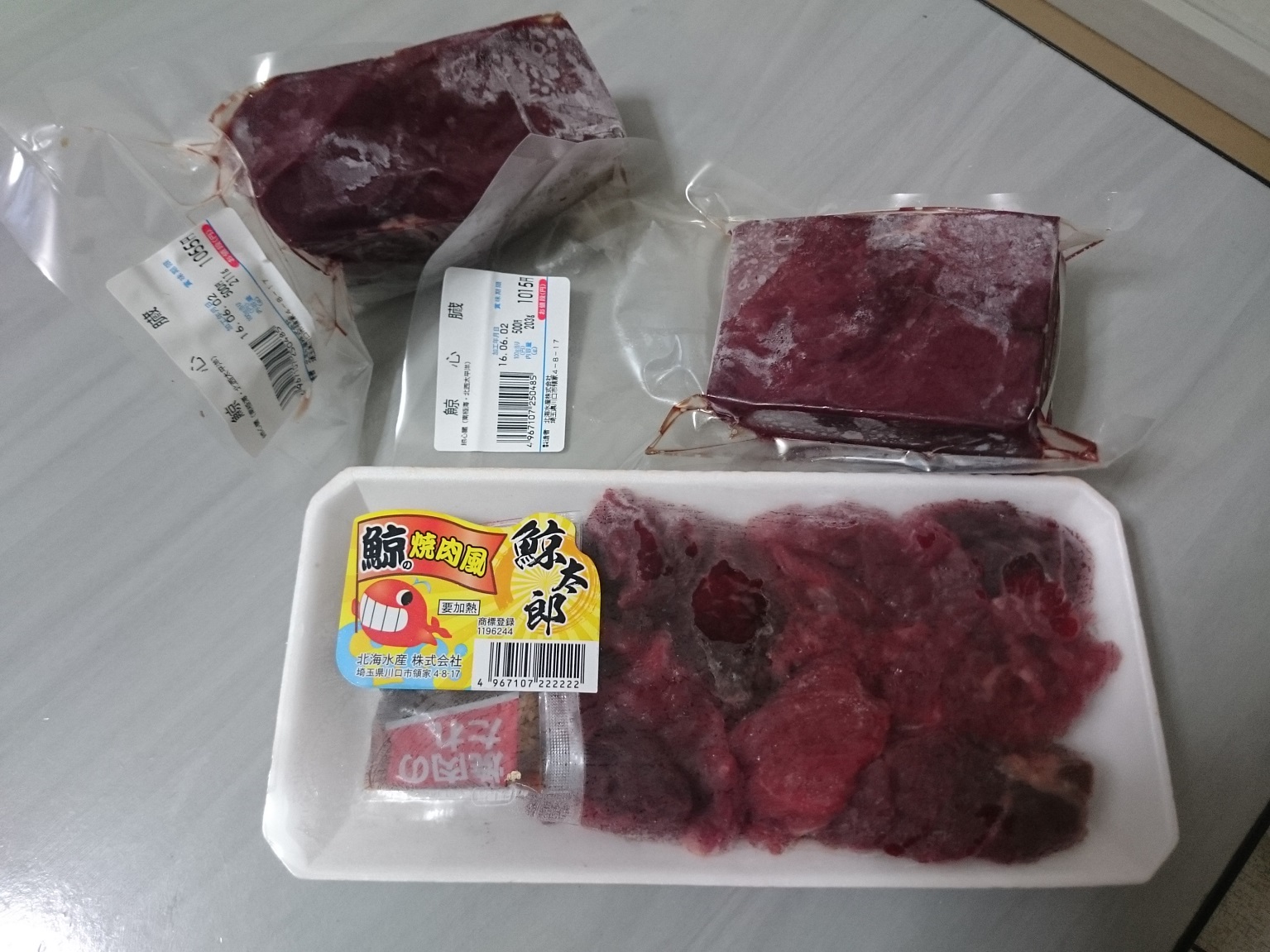 今日は貼紙にあった稀少部位の心臓を2つとアイスランド産の焼肉用の鯨肉を買いました。