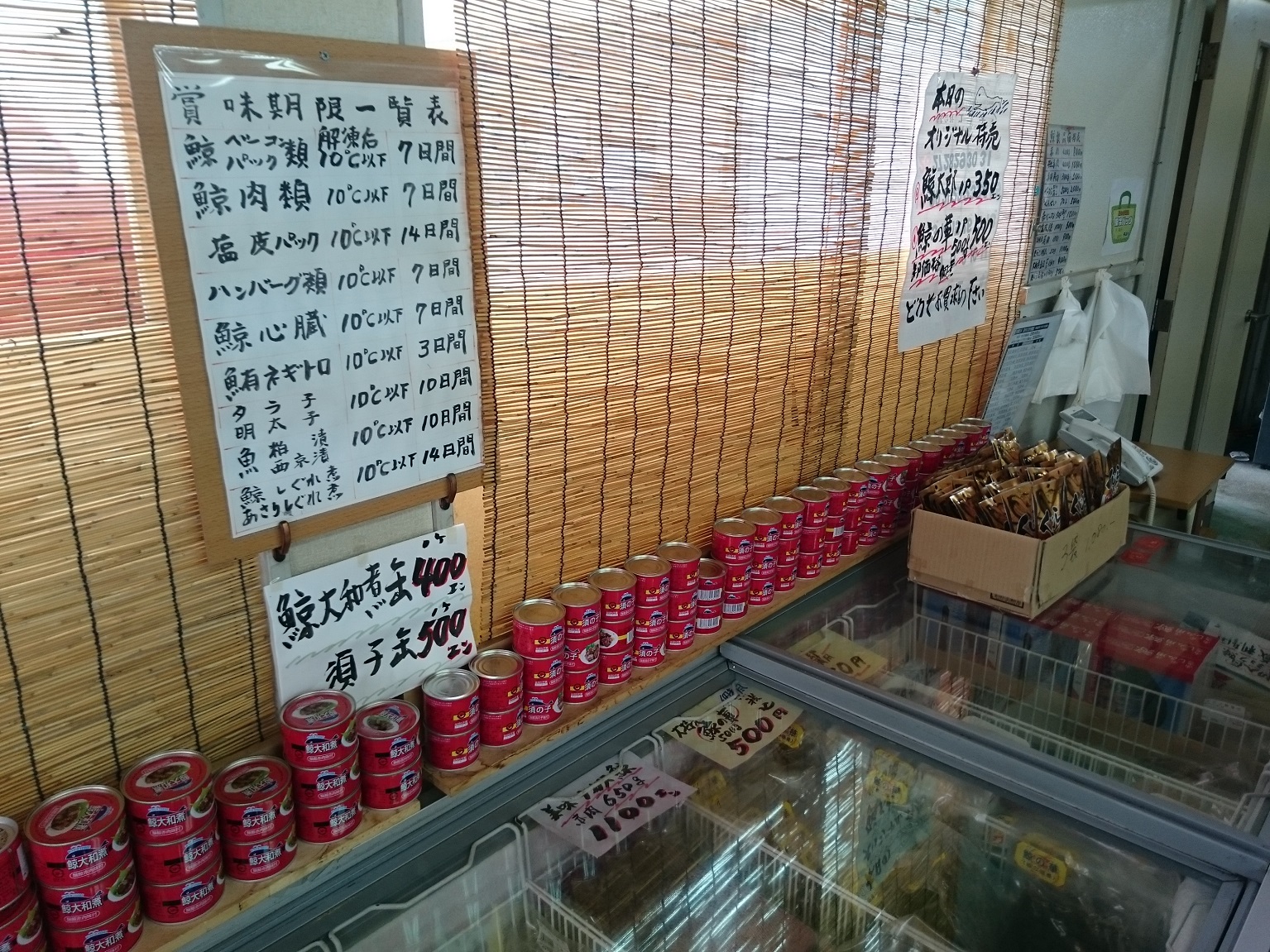 鯨食堂では鯨料理の提供の他に鯨肉や鯨加工品が売られています。