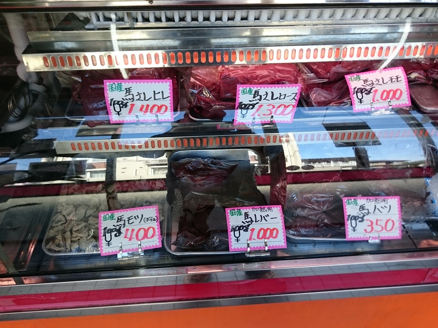 店の陳列の様子です!馬肉は基本ブロックでショーケースに陳列されていますが、注文の応じて切り分けたり、お好みの厚さにスライスしてもらえます。
