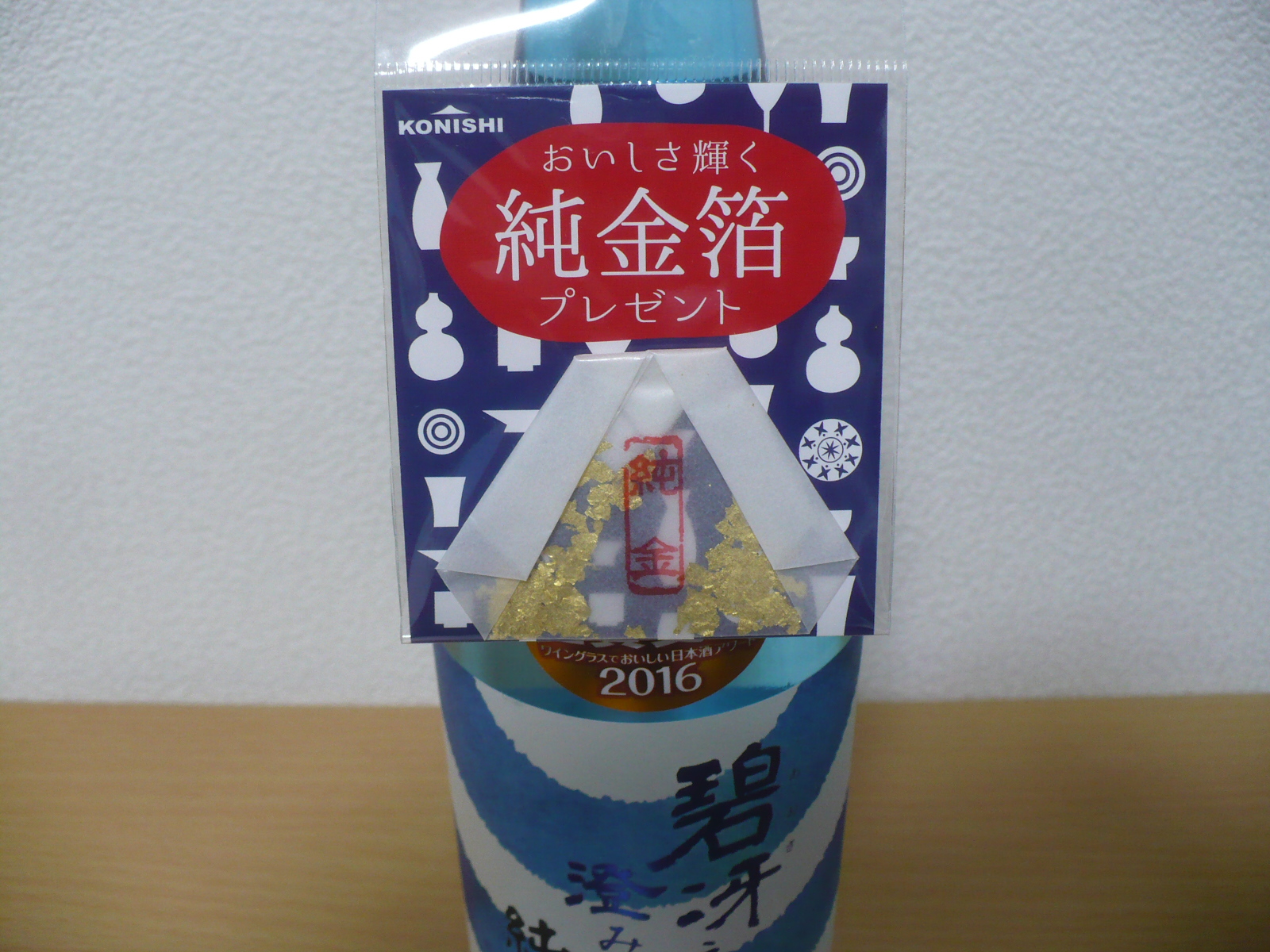 酒を購入したら首掛けの景品で食用の純金箔が付いていました。ラッキー(^∀^)v 今度、料理に使ってみたいと思います。