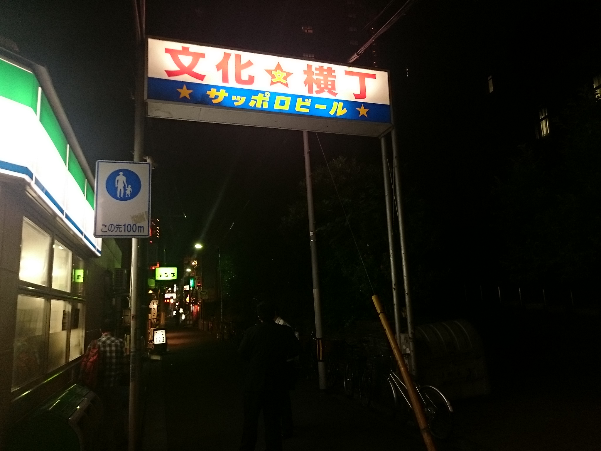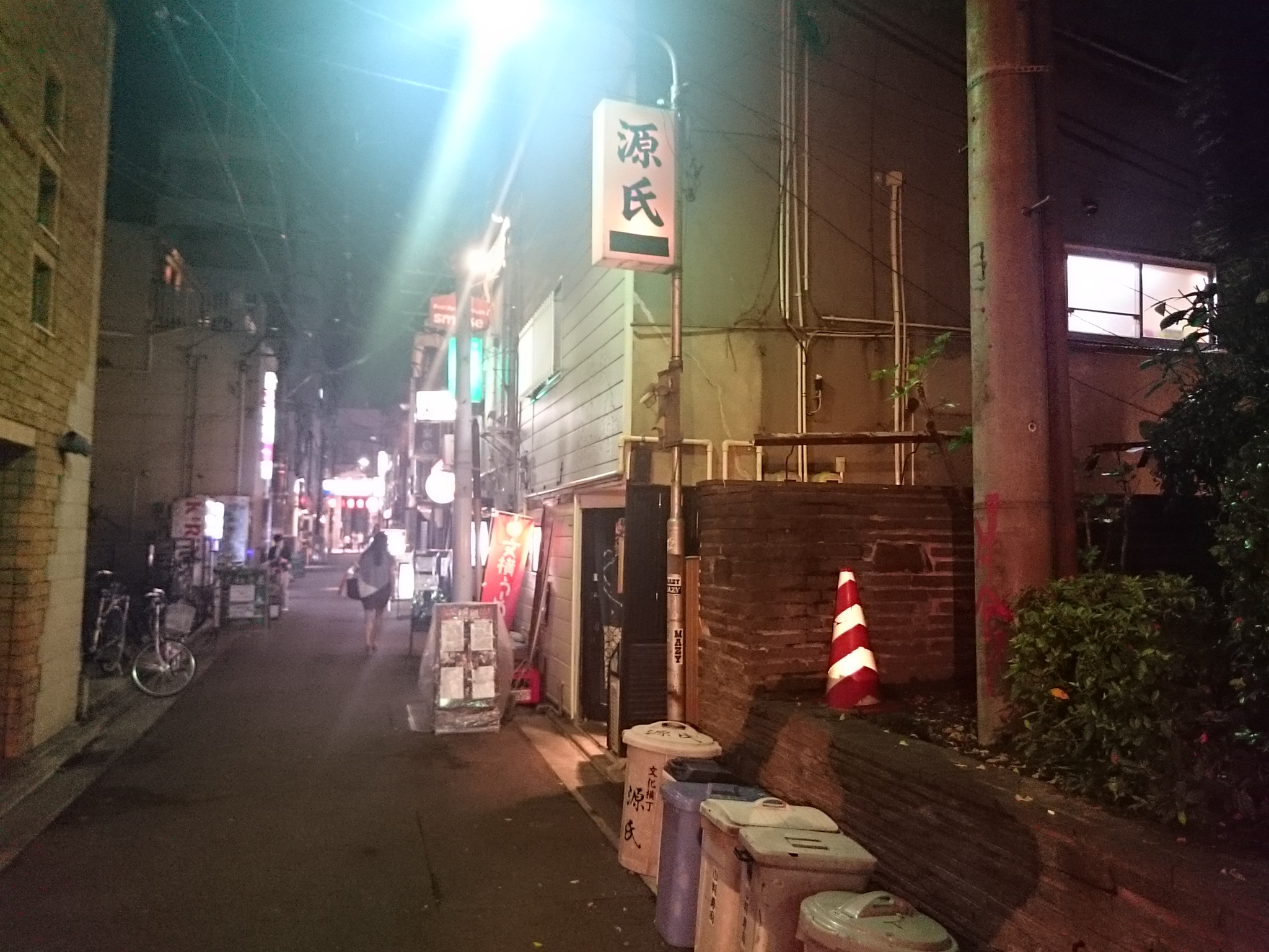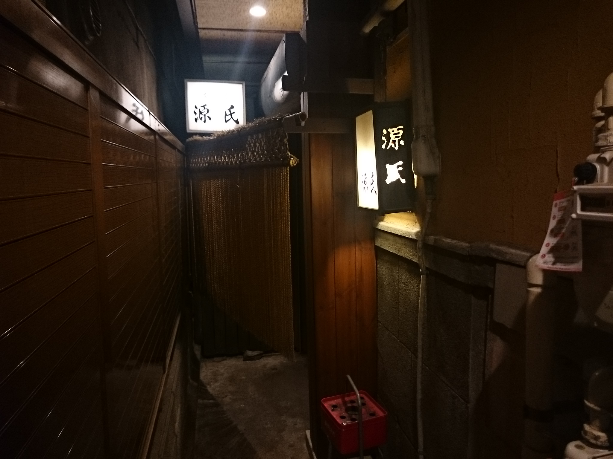 源氏は文化横丁の奥まった所あり、通りには看板しか出てないので、看板の下の細い路地を入って行きます。