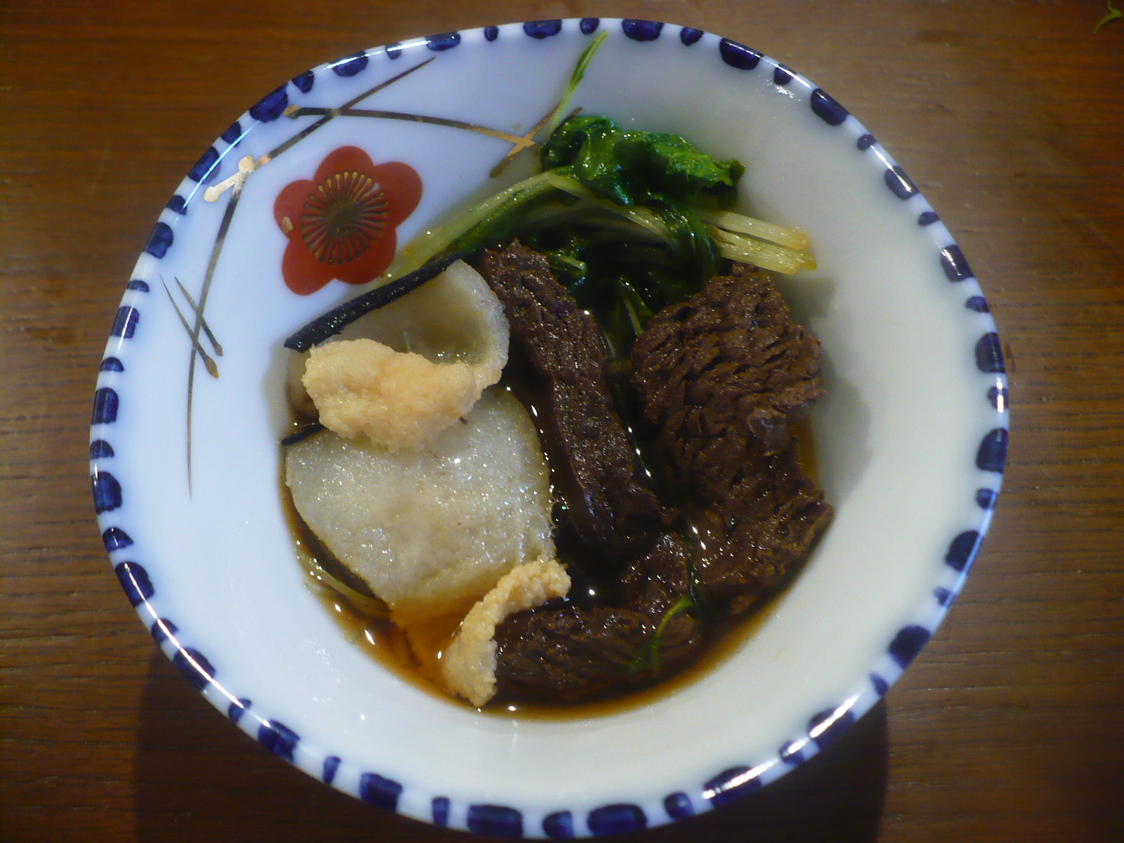 甘辛い味付けで、水菜のシャキシャキ感たまりません!今回は鯨皮も入れてるので適度に脂分もあって美味い!また、鯨肉は少し癖のある独特の味わいだが、懐かしくて美味しかったです。幼少の頃にお婆ちゃんが良く作ってくれて食べたのを思い出す懐かしい味わいでした。