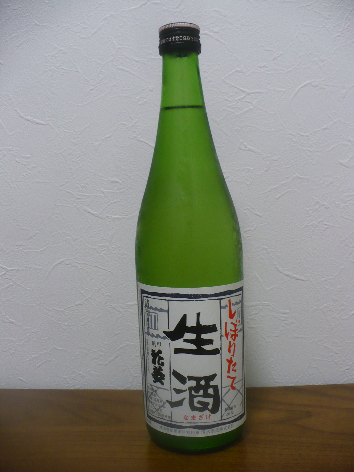 「今日の晩酌!VOL.1415」今日は埼玉県加須市にある酒屋さん・かめや酒店で1080円で購入した、同市の酒蔵・清水酒造の醸す酒「亀甲花菱・しぼりたて生酒」を冷やして飲みました。この酒、10月にかめや酒店に行った時に冷蔵庫に最後の1本で残っていた、28BYのしぼりたて新酒なんです。もう29BYのしぼりたて新酒が出回る時期ですが、今頃飲んでみました。酒はラベルを見る限りでは糖類無添加の普通酒の様でラベルには書いてませんが、アルコール度数が19度台と高いので原酒なのでしょう。飲んだ感想はやや濃醇な辛口の酒で、生酒なので壜詰日から1年経過していても麹独特の味わいは健在です。時間が経って熟成されたのか・・・?アルコール度数が19度台と高いですが、まろやかで飲みやすく旨味もあって美味しかったです。