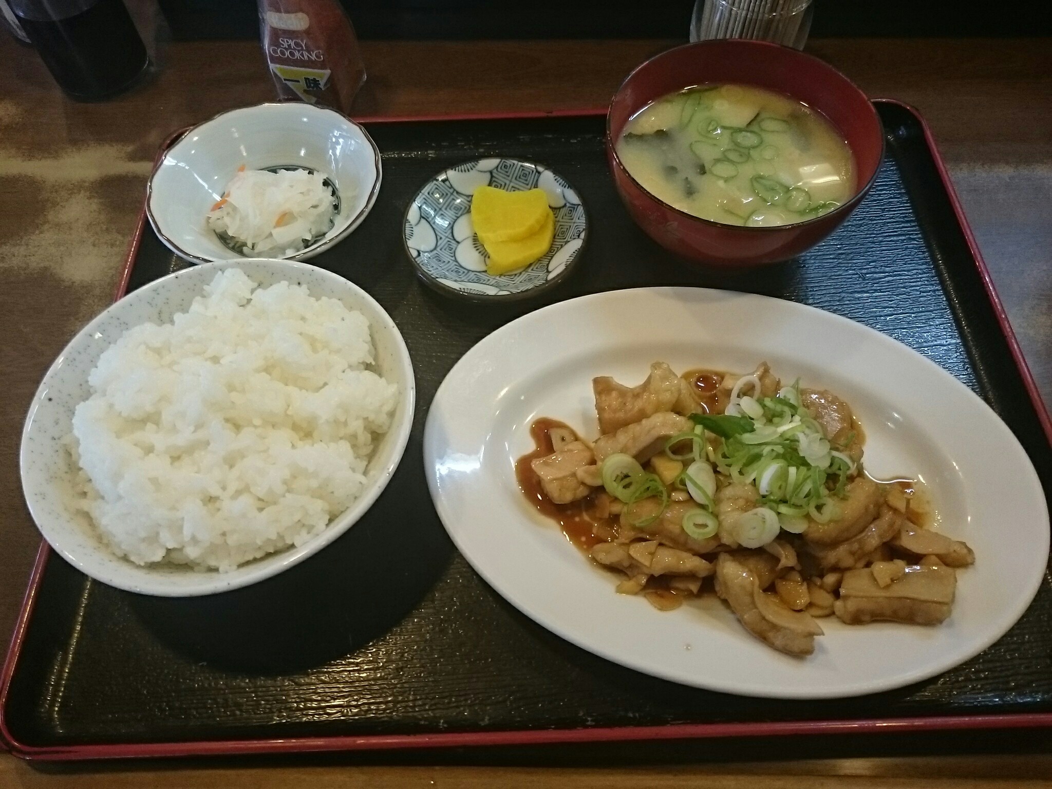 今日、食べたのは「ホルモンにんにく炒め定食」(1458円)です。脂がタップリ付いた馬モツとにんにくを炒めたスタミナ抜群の一品で、馬モツの脂の甘味と旨味が、にんにくと醤油味にマッチしてメチャ美味しかったです。これはホントご飯が進みますねぇ〜