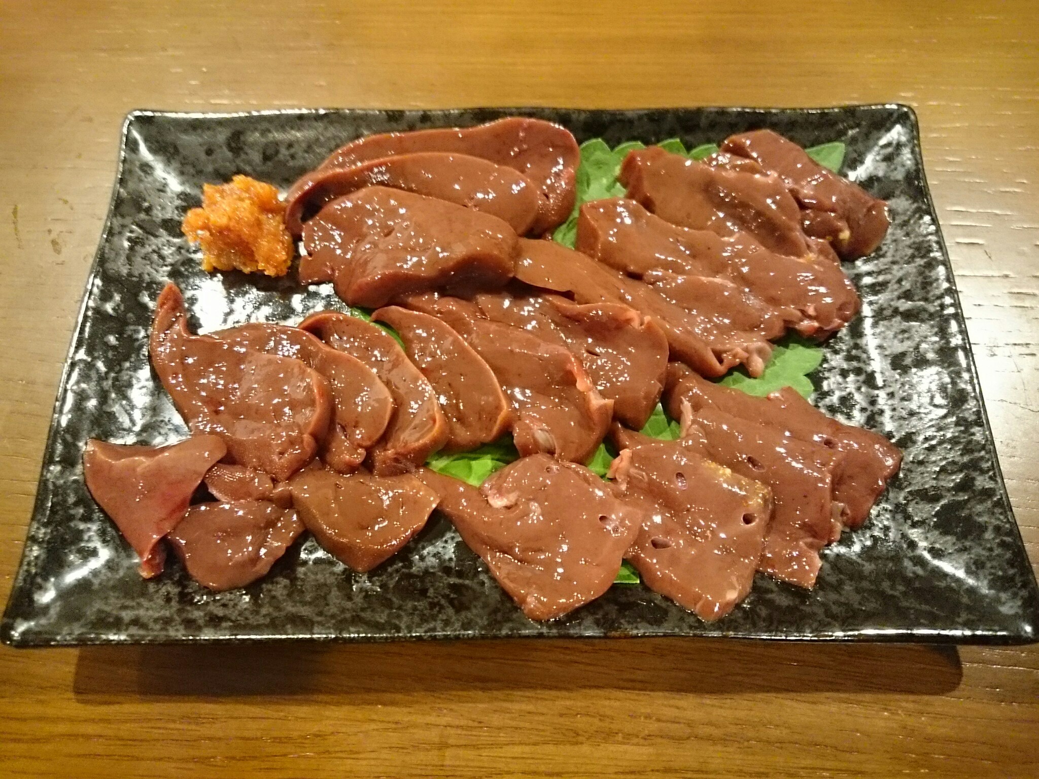 1品目 馬レバー刺しです! 久々に食べる馬レバー、濃厚な旨味があってメチャ美味しい〜 でも年々少しずつ値段が上がってるんですよねぇ・・・(泣)