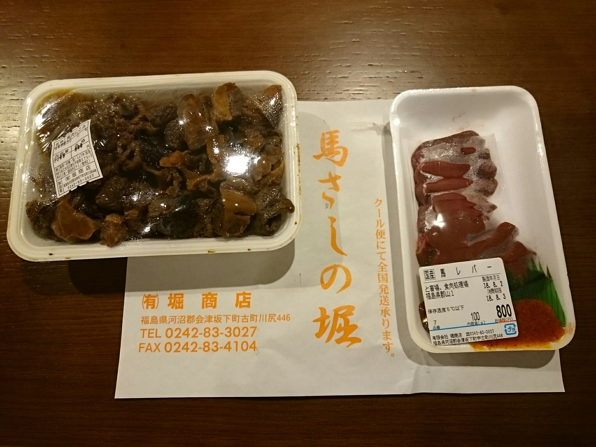 購入したのは馬レバー刺しと馬肉の煮込みです。今回、久々に馬レバーが手に入ってラッキーでした。^^