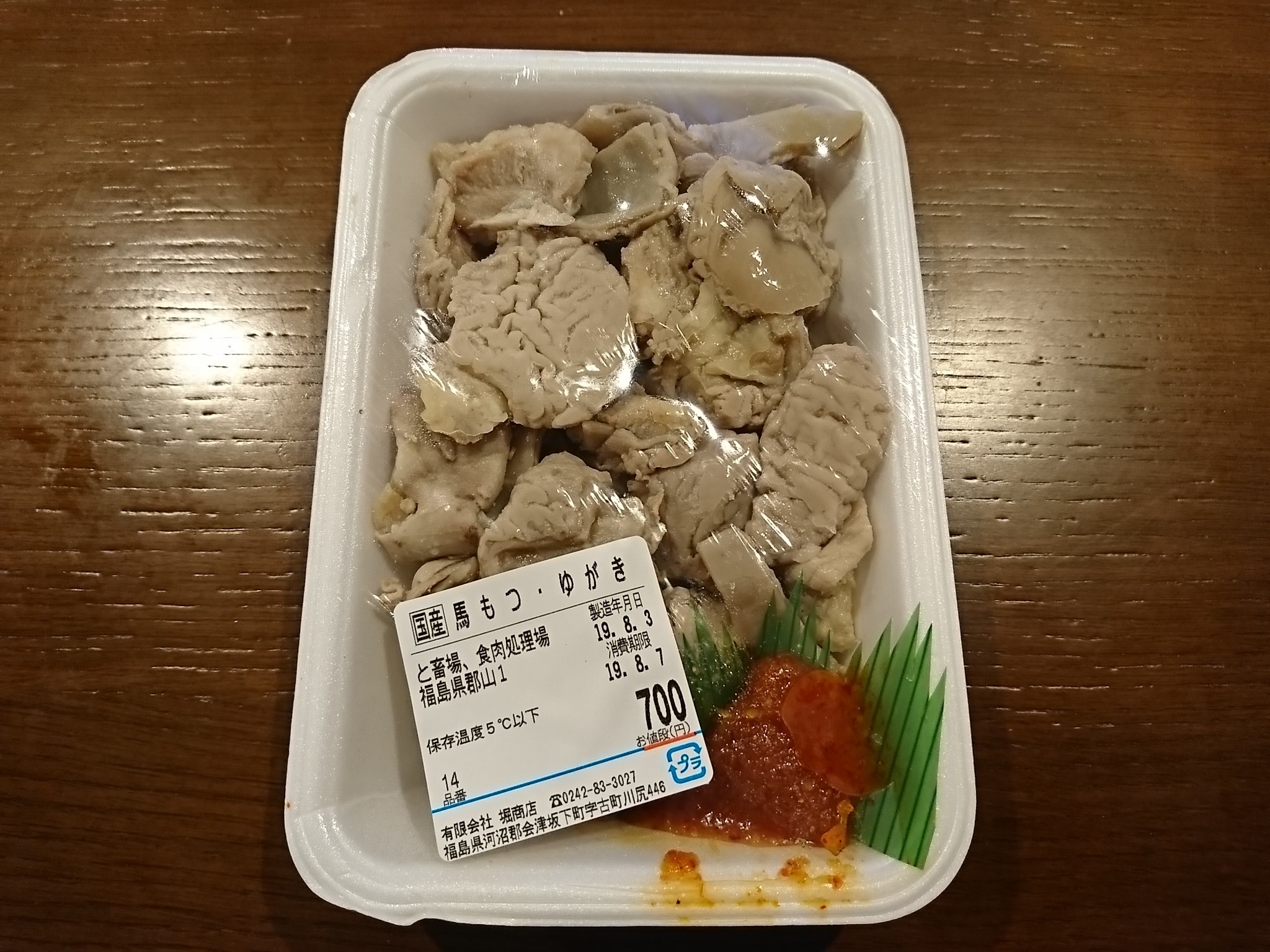 今日の酒の肴は昨日、会津ツーリングの時に会津坂下町にある、堀商店で買った、馬モツの湯引きです。