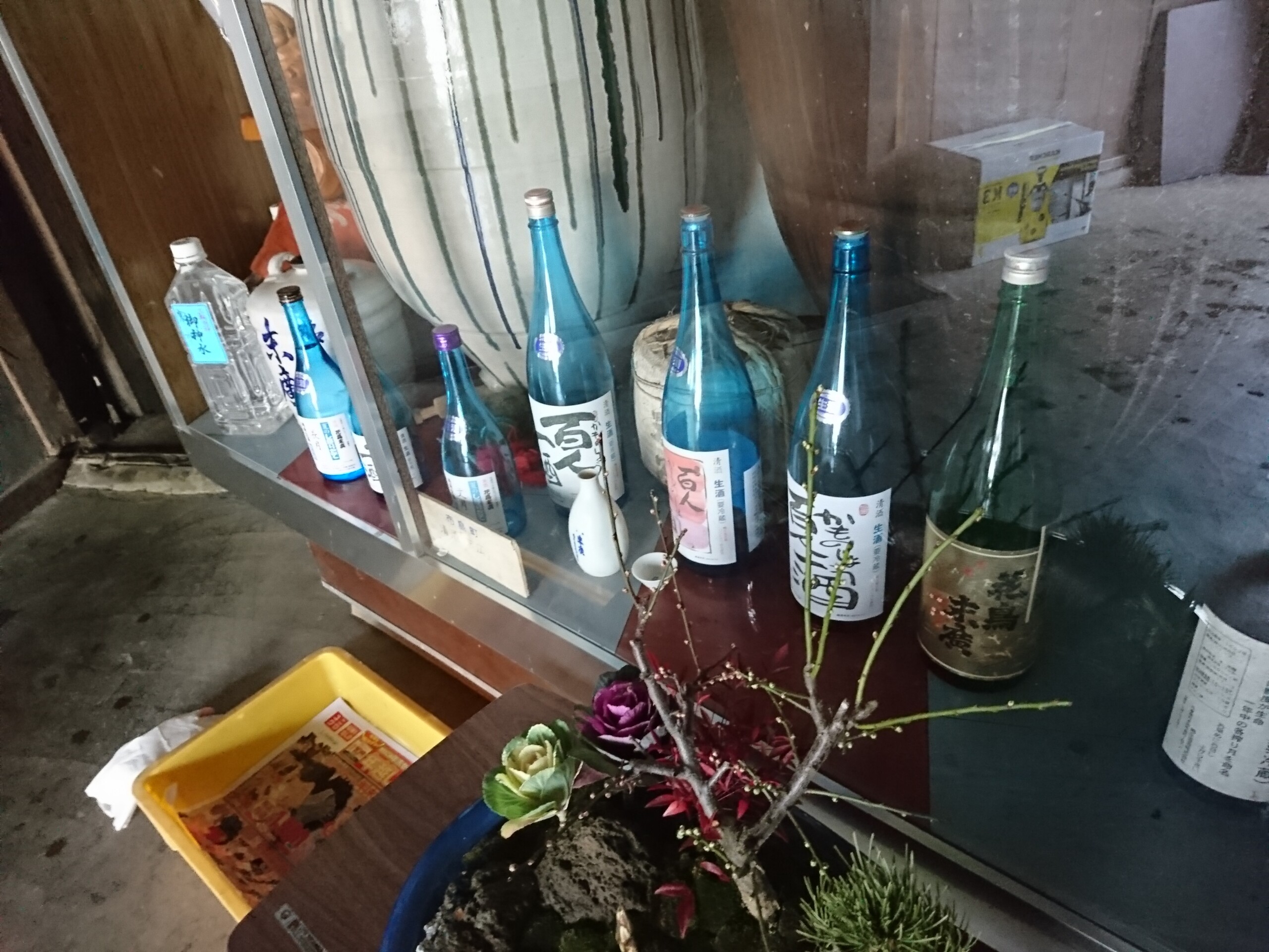 鴨庄酒造の銘柄は花鳥末廣だったらしいが、店主曰く現在は百人一酒の酒1種類のみの販売らしいです。