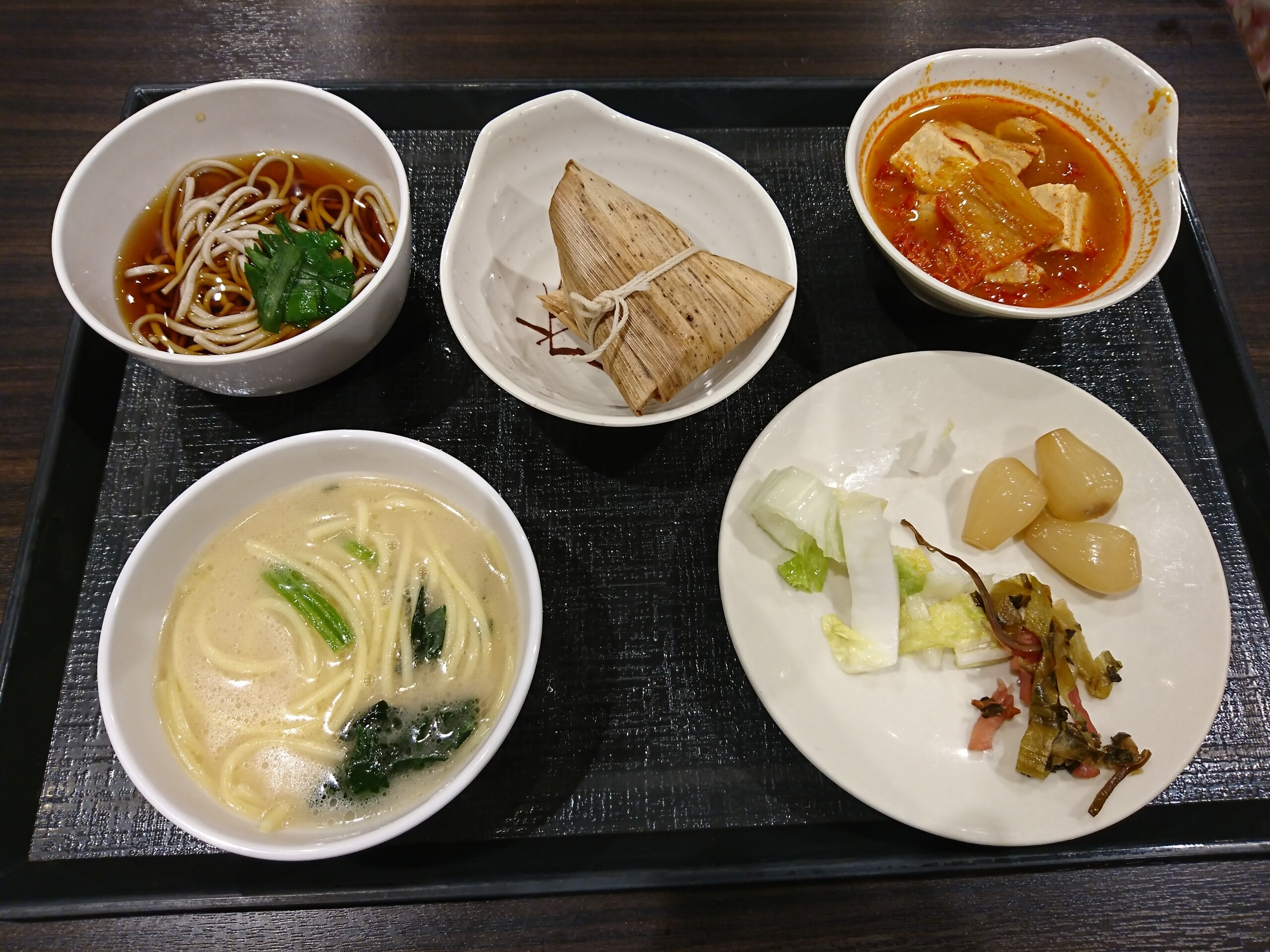 〆は豚キムチに中華ちまきとそば・ラーメン・漬物です! ディナーバイキング食べまくりでお腹パンパンです。