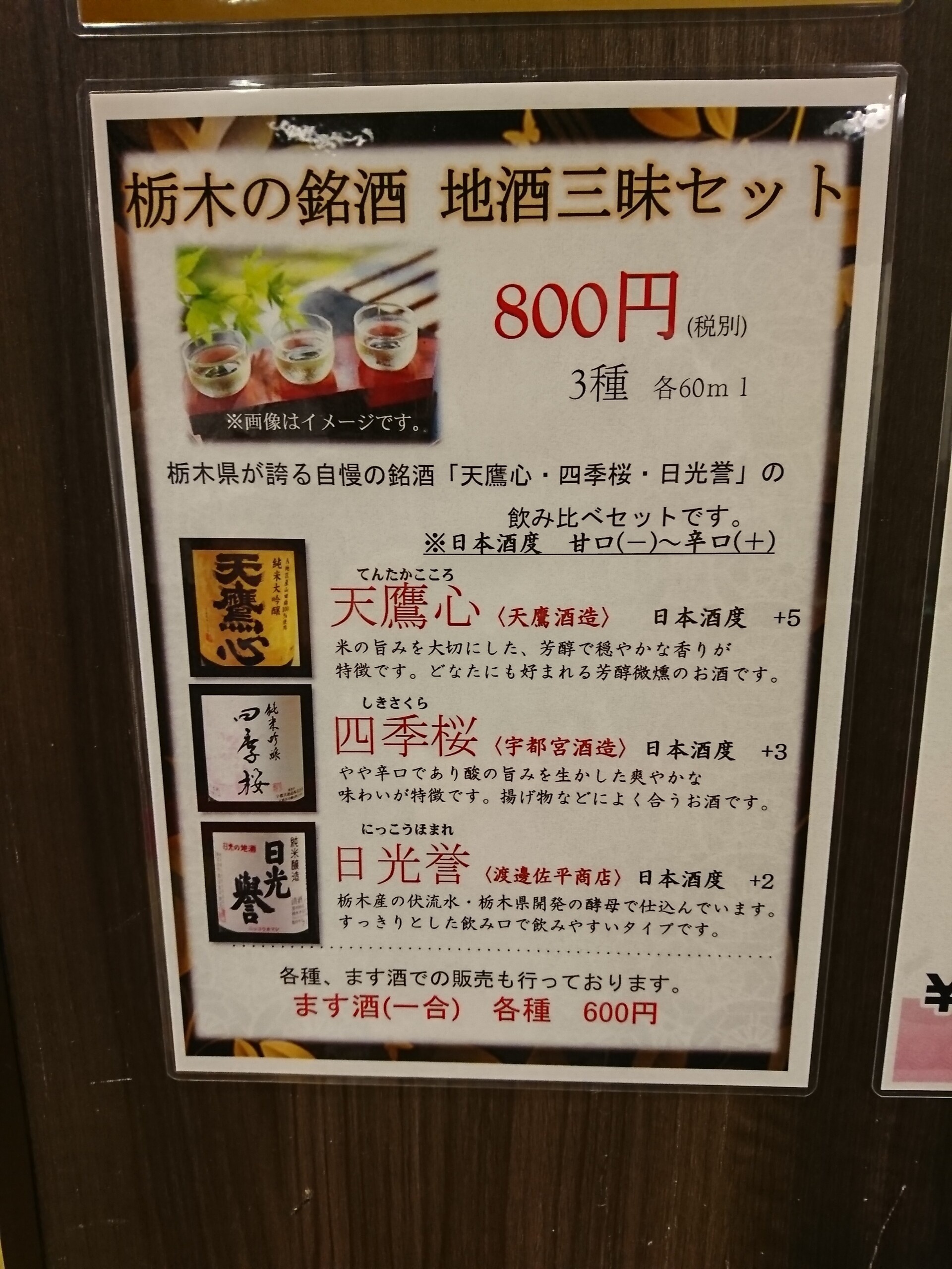日本酒は栃木の地酒の飲み比べセットがありました。