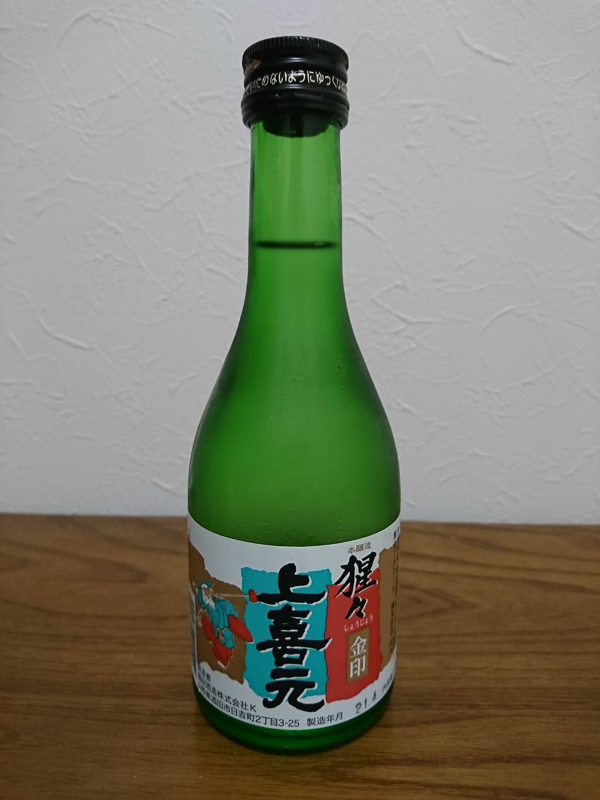 今日は山形県酒田市のスーパー、ト一屋・新橋店で333円で購入した、同市の酒蔵・酒田酒造の酒「上喜元・金印本醸造・猩々」を少し冷やして飲みました。酒は本醸造ですが精米歩合60%の高精白の米を使用しています。飲んだ感想は最初に少しフルーティーな香りのある、淡麗のやや辛口の酒で適度な酸味と後味はほのかに甘みが口の中に広がり旨味もあって綺麗で飲みやすい酒でとても美味しかったです。