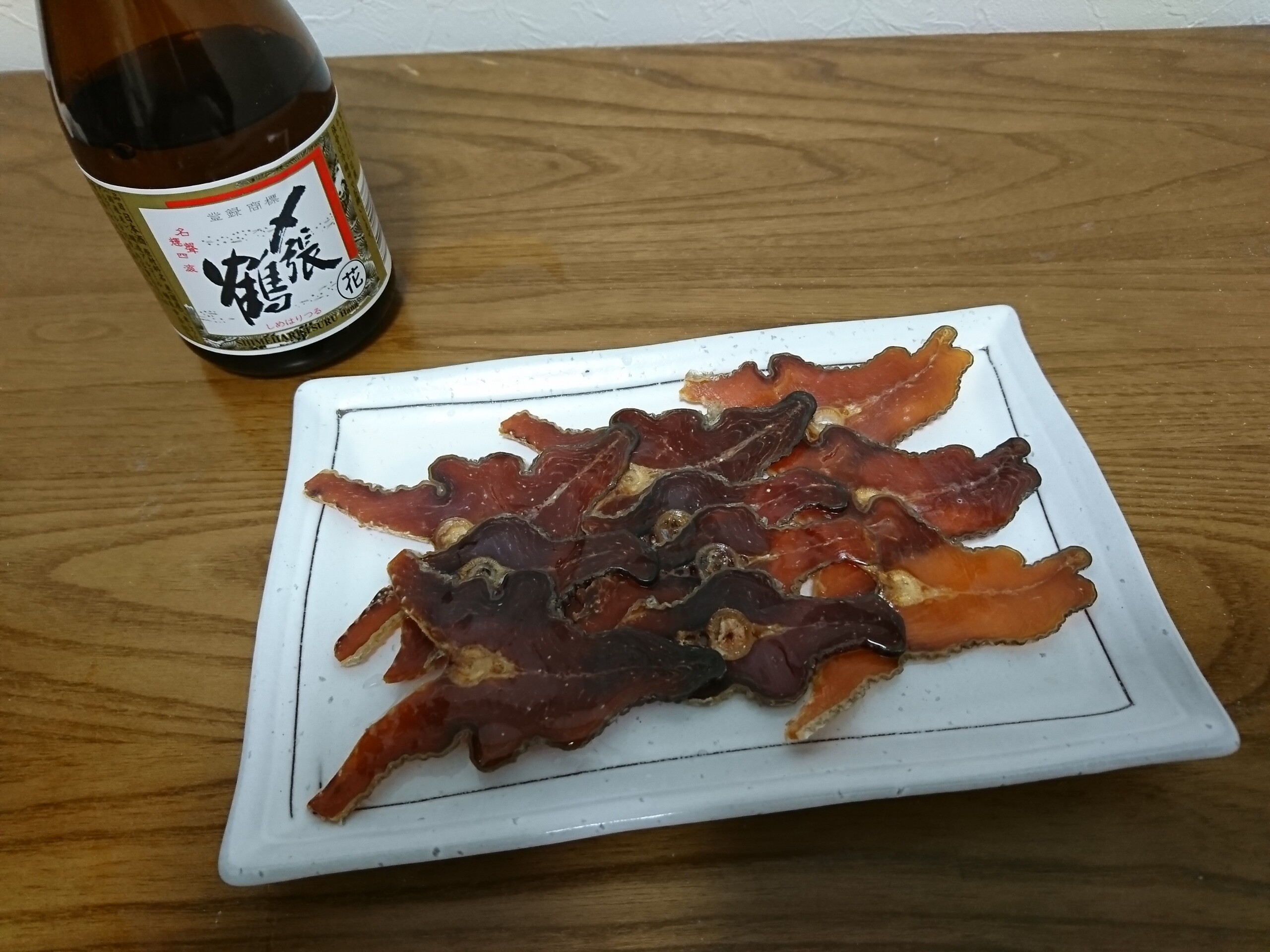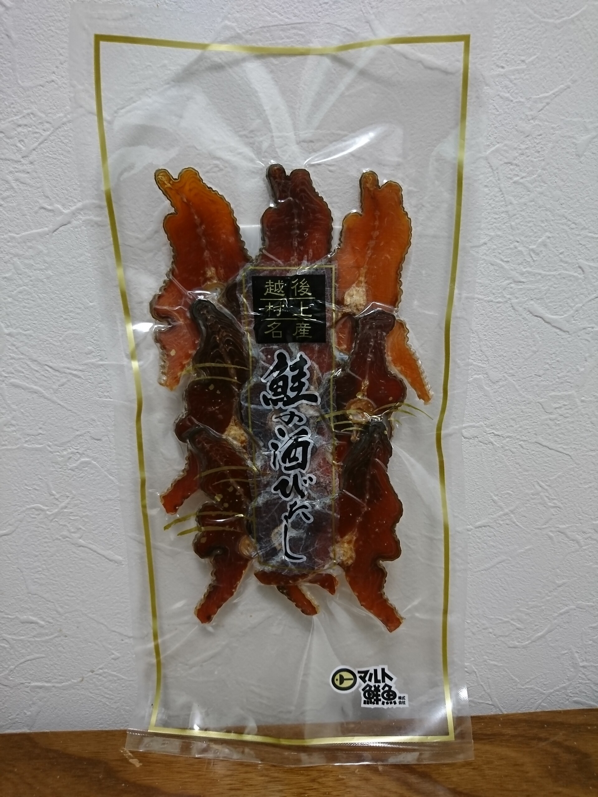今日の酒の肴は村上市のマルト鮮魚と言う会社が製造する村上名産の鮭の酒びたしです。鮭の酒びたしは毎年11〜12月頃に村上市の三面川を目指して日本海を南下する秋鮭を甘塩に漬け込んで半年間天然乾燥させた鮭の干物です。