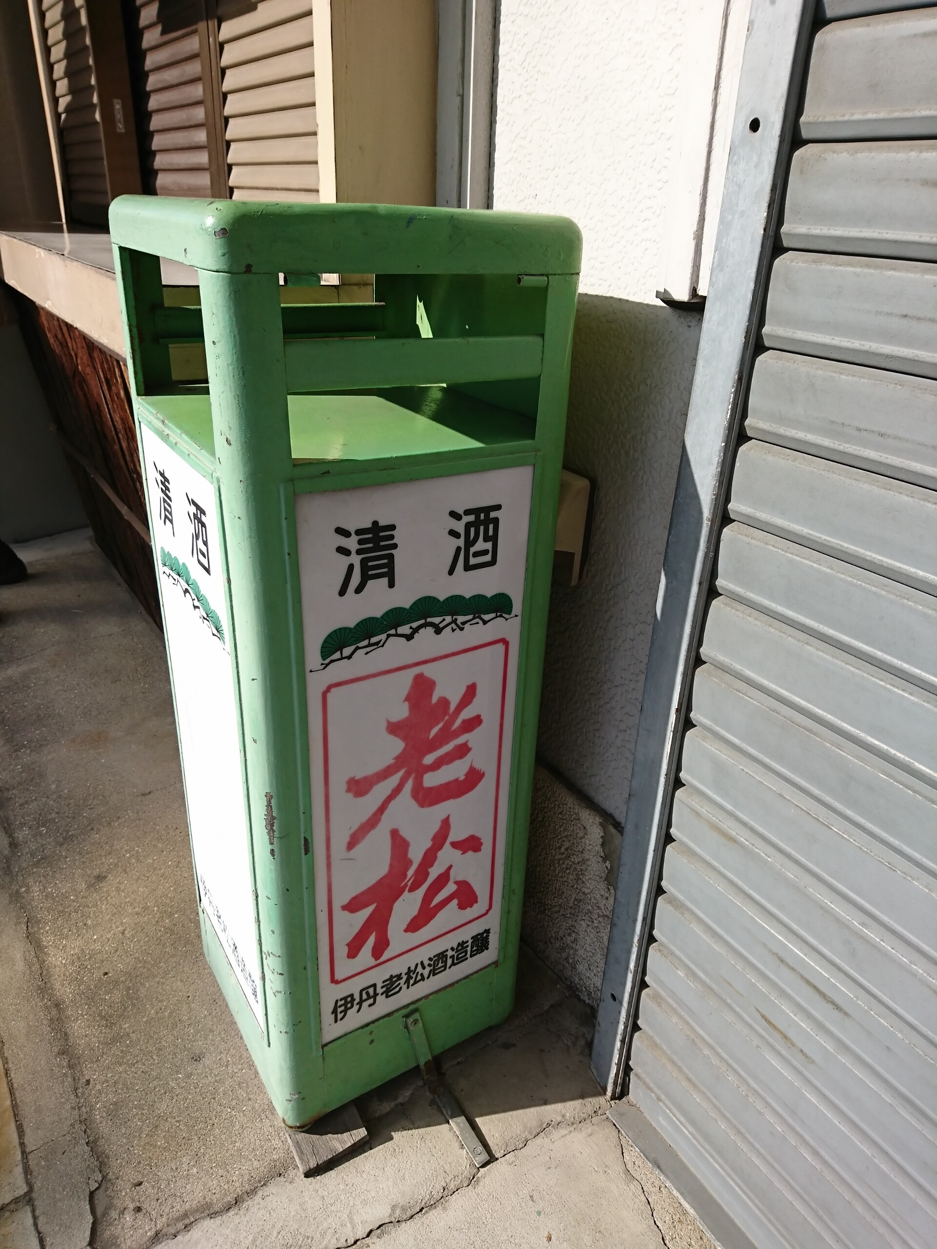兵庫県尼崎市の園田競馬場近くの商店の前に置かれていた老松の電話台です。