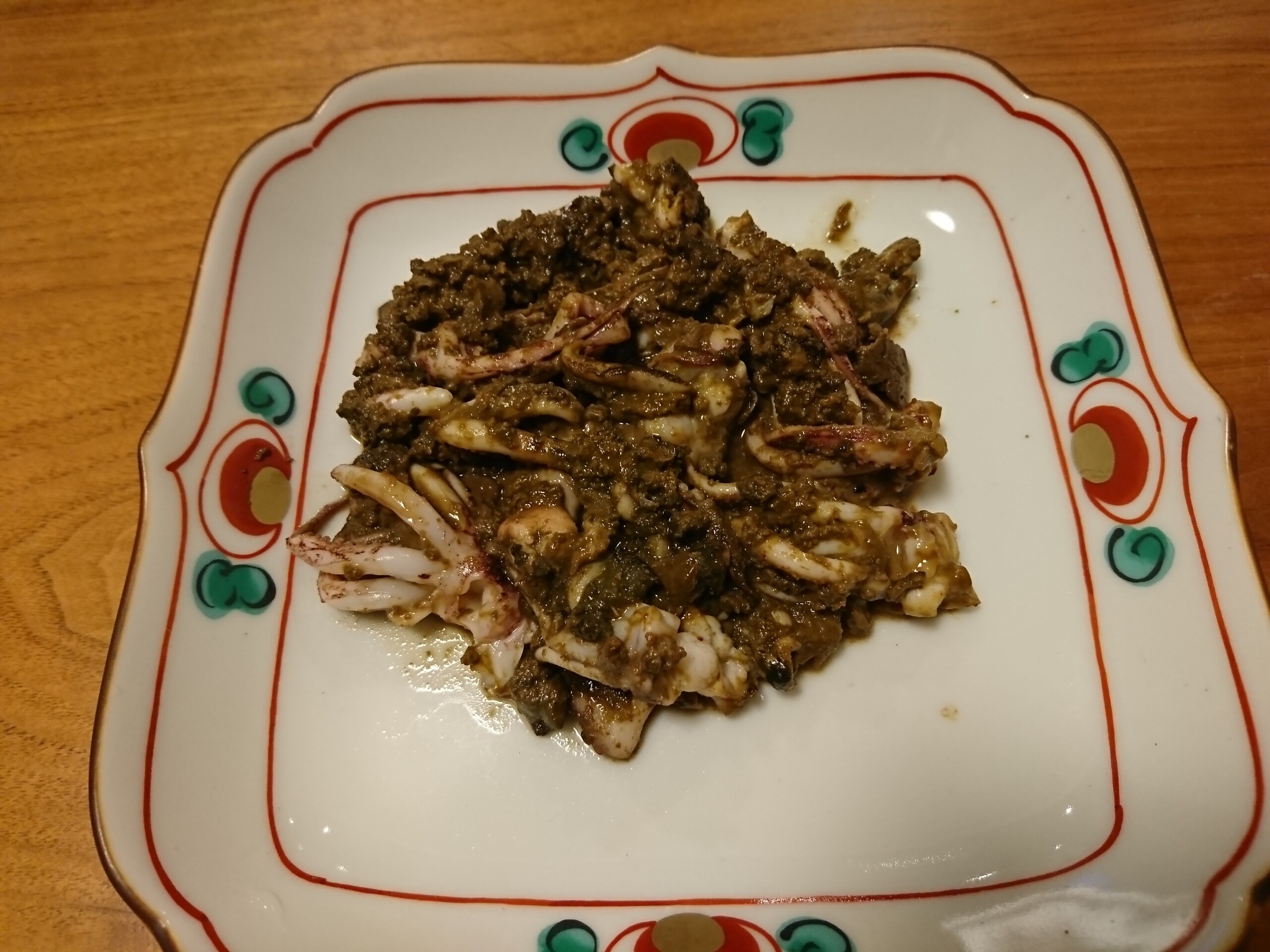 刺身にしたイカのゲソとエンペラは、一夜干しにしたイカから取った肝と一緒にフライパンで焼いて、イカの肝焼きにしました。味付けはしていませんが適度な塩味があって、そして何と言っても濃厚な肝の旨味があってこれは美味い!メチャ酒が進む味わいで酒の肴に最適です!300円のイカでいろいろ美味しいイカ料理が楽しめて幸せです。一夜干しとスルメが出来上がるのも待ち遠しいですね。^^