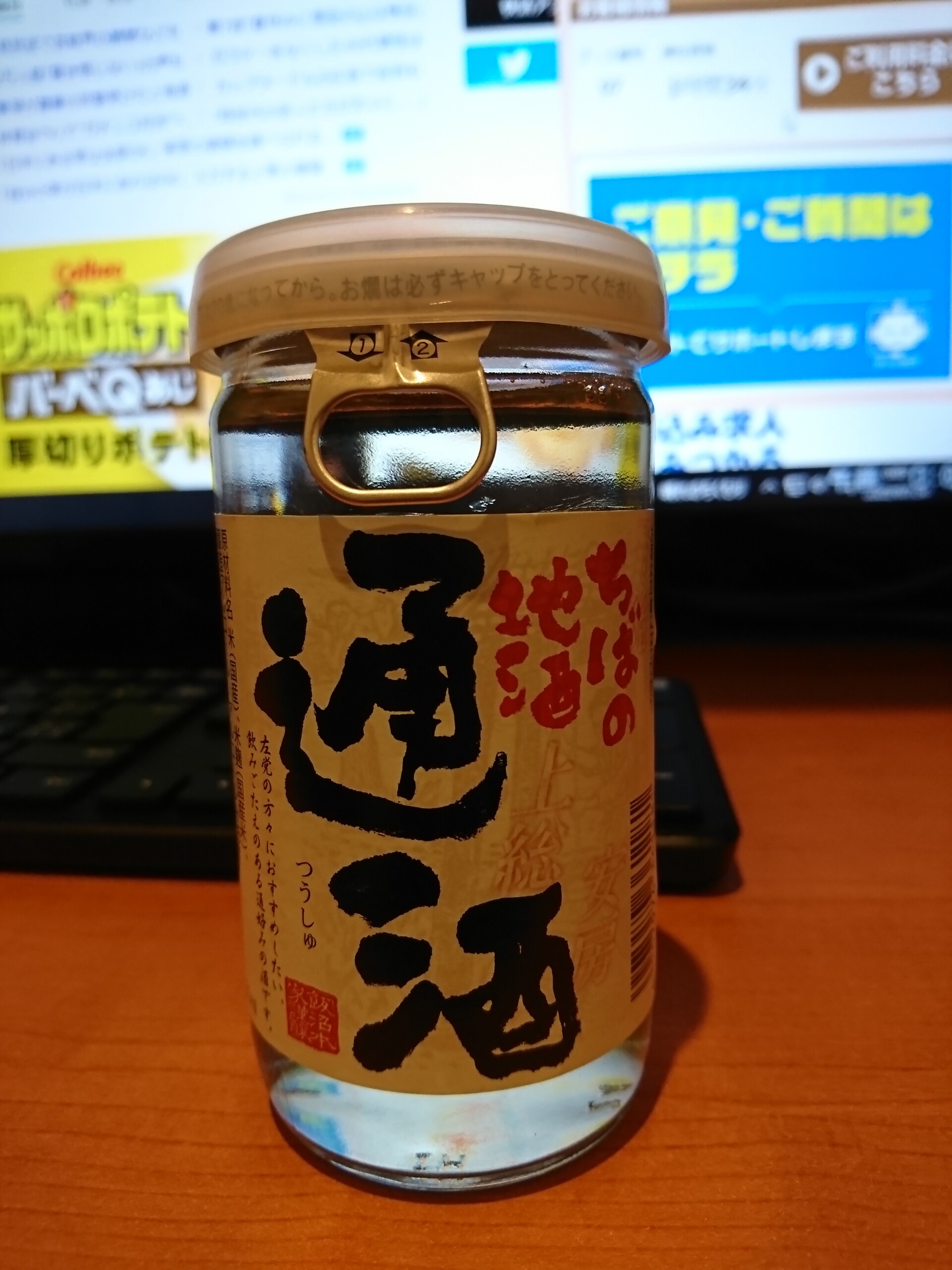 今日は千葉県の船橋競馬場のナイター競馬に行っていたので、宿泊地の快活CLUBで晩酌!飲んだのは船橋市のコープみらい・コープ薬円台店で216円で購入したカップ酒「ちばの地酒・通酒」です。この酒、千葉県酒類販売(株)は販売者で酒々井町の酒蔵・飯沼本家が製造する糖類無添加の普通酒です。飲んだ感想はやや濃醇な重たい感じの辛口の酒で酸味と苦みが口の中に残りますが、値段の割にしっかりとした飲みごたえのある酒で旨味もそこそこあって結構美味しかったです。