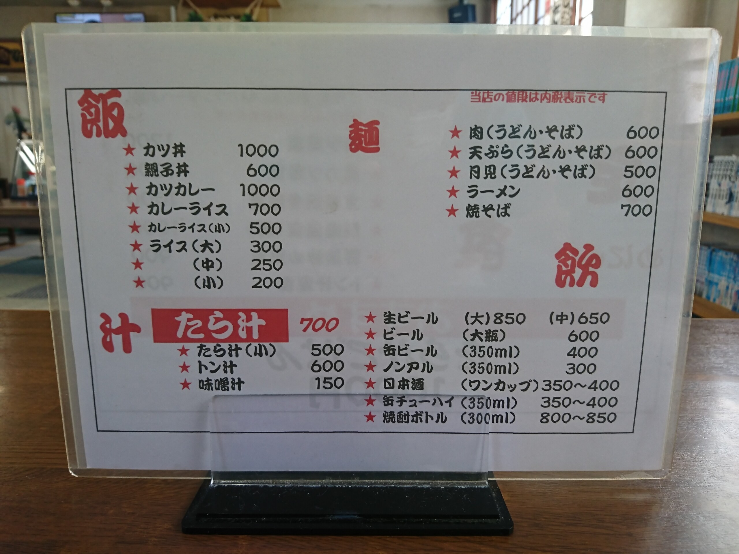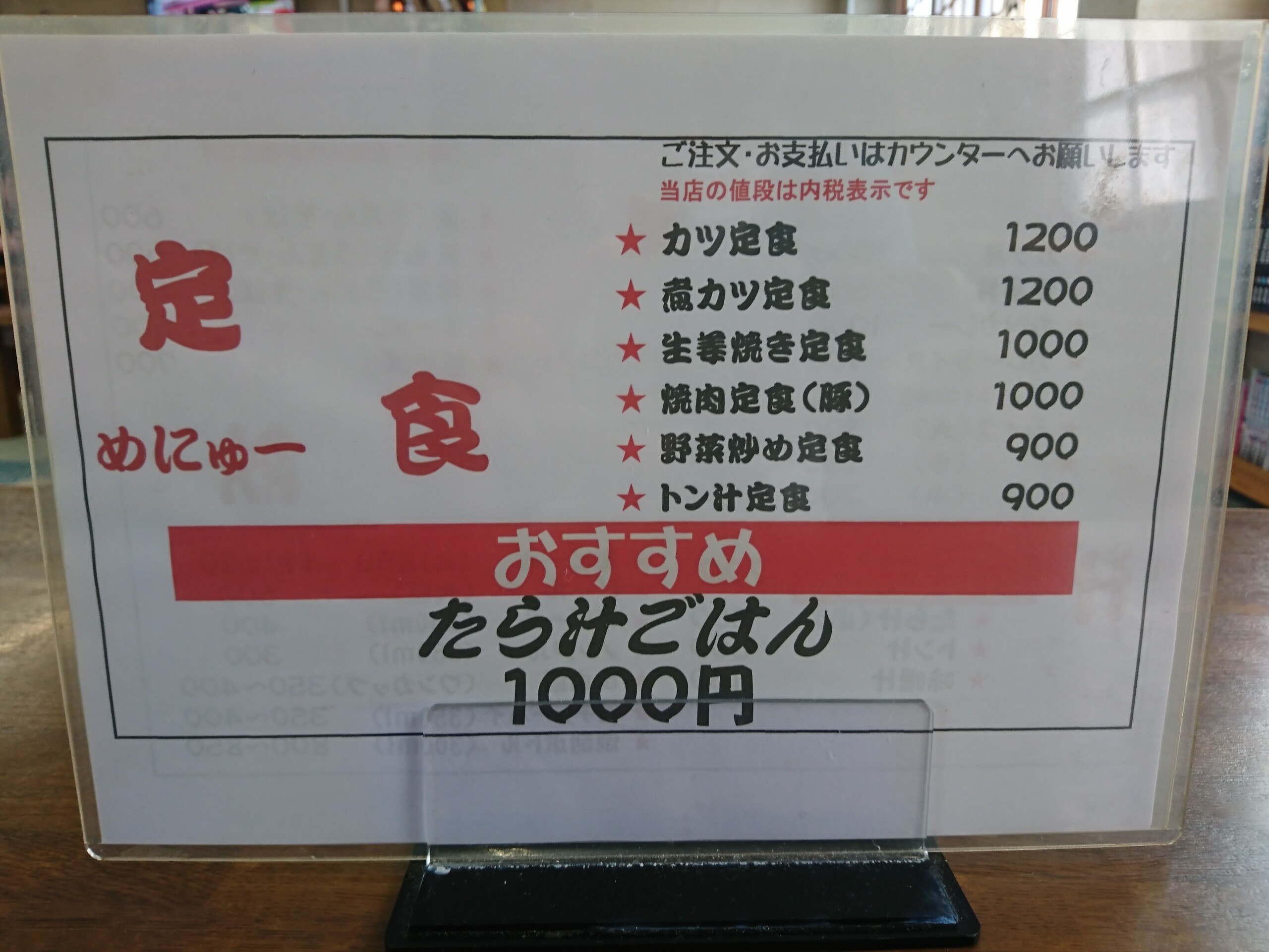 定食も種類は少なめ、なんせここのイチオシはおすすめにもあるたら汁ですから・・・