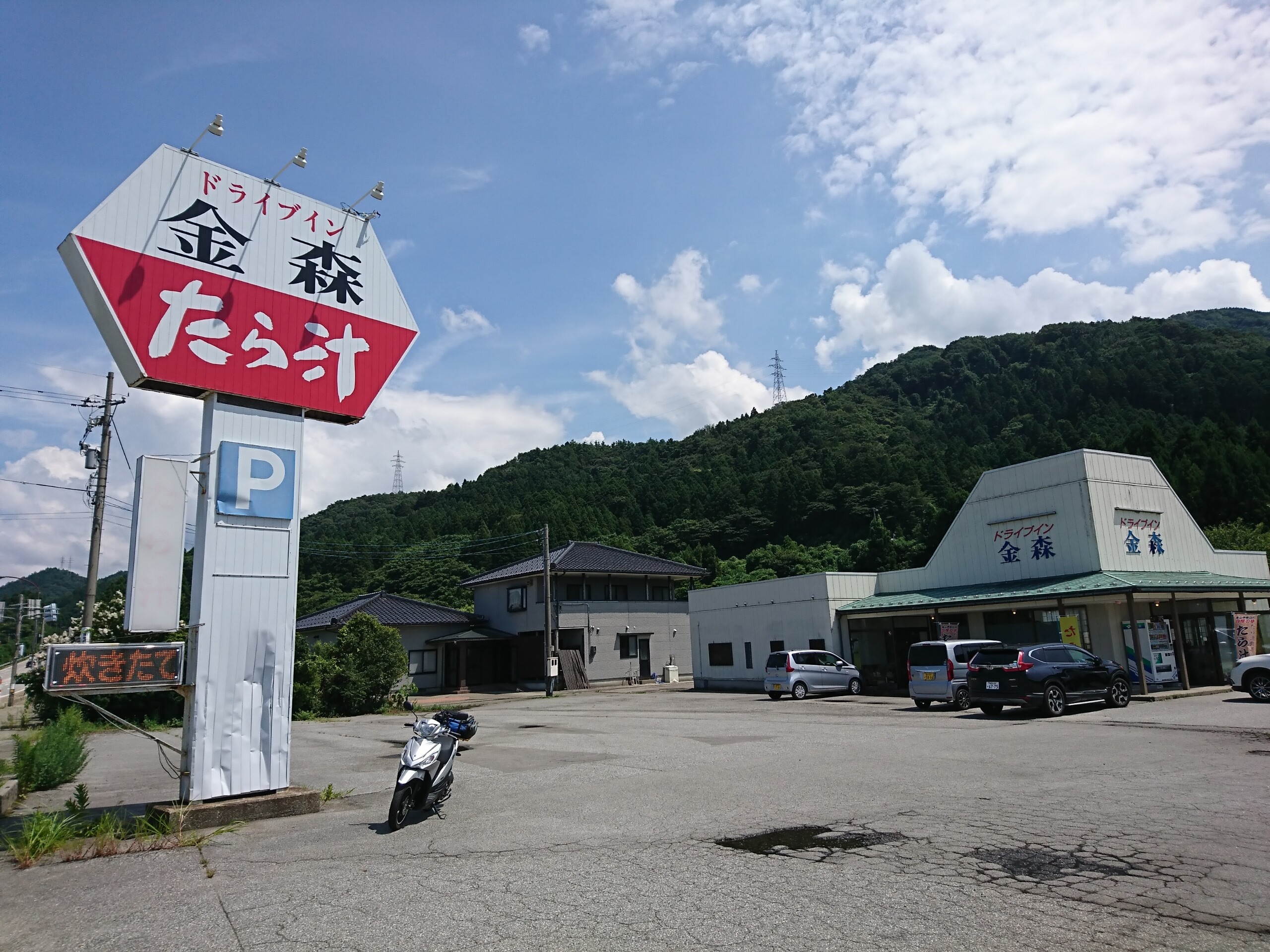 今日は盆休みの長距離ツーリングで富山県朝日町の国道8号線沿いにあるドライブイン金森に行ったので紹介します。訪れたのは8月6日(土)の昼どき ここの名物は何と言ってもたら汁で、この界隈は「たら汁街道」と呼ばれ、たら汁を提供する飲食店が立ち並んでいます。