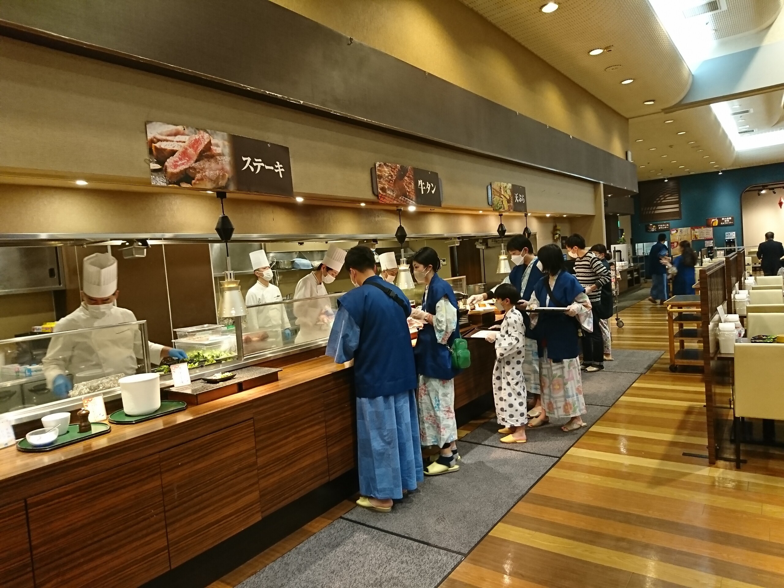 ライブキッチンでは牛タンとステーキ・天ぷらがありました。