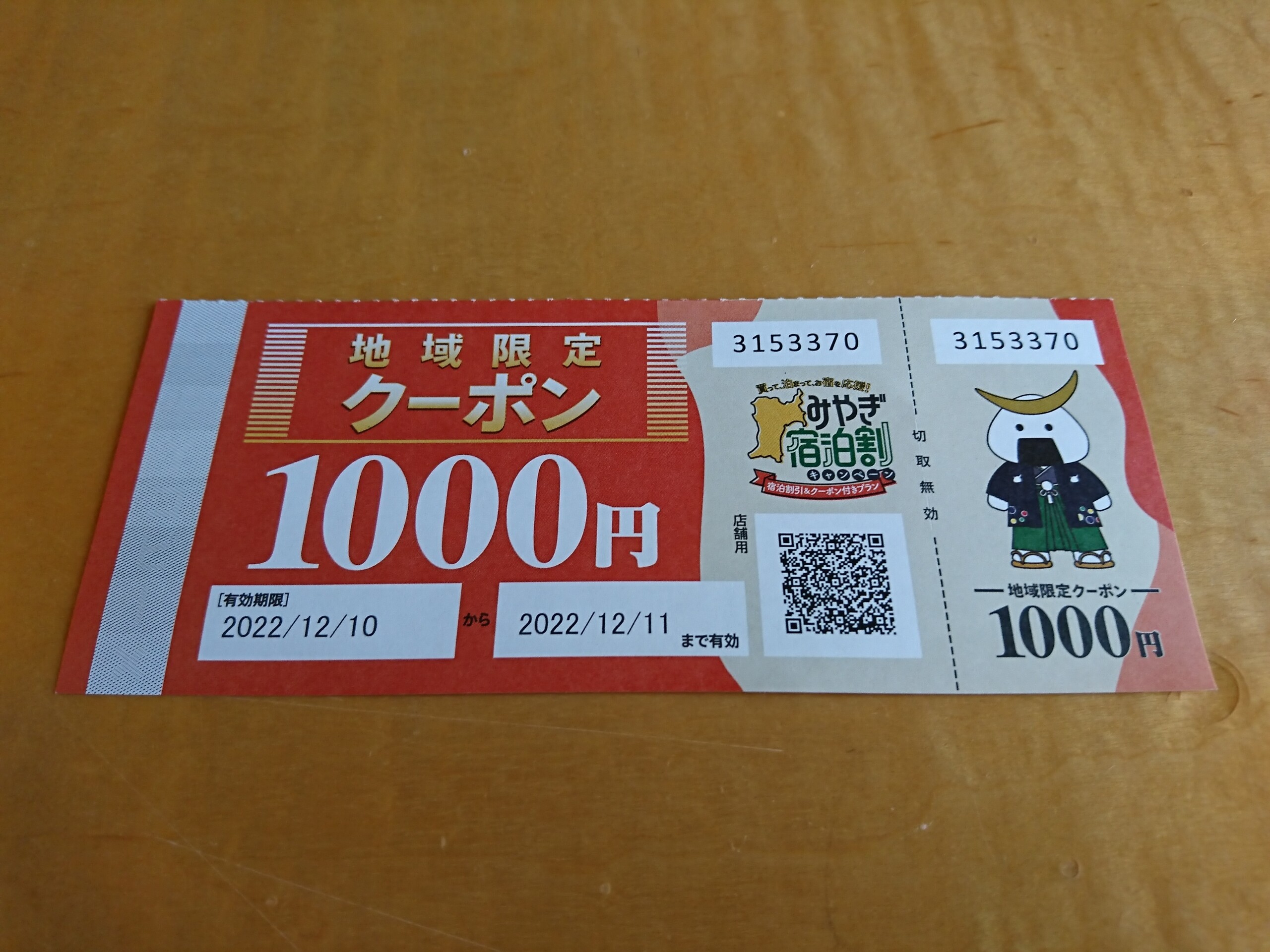 チェックインすると全国旅行支援割の特典の1000円クーポンがもらえました。