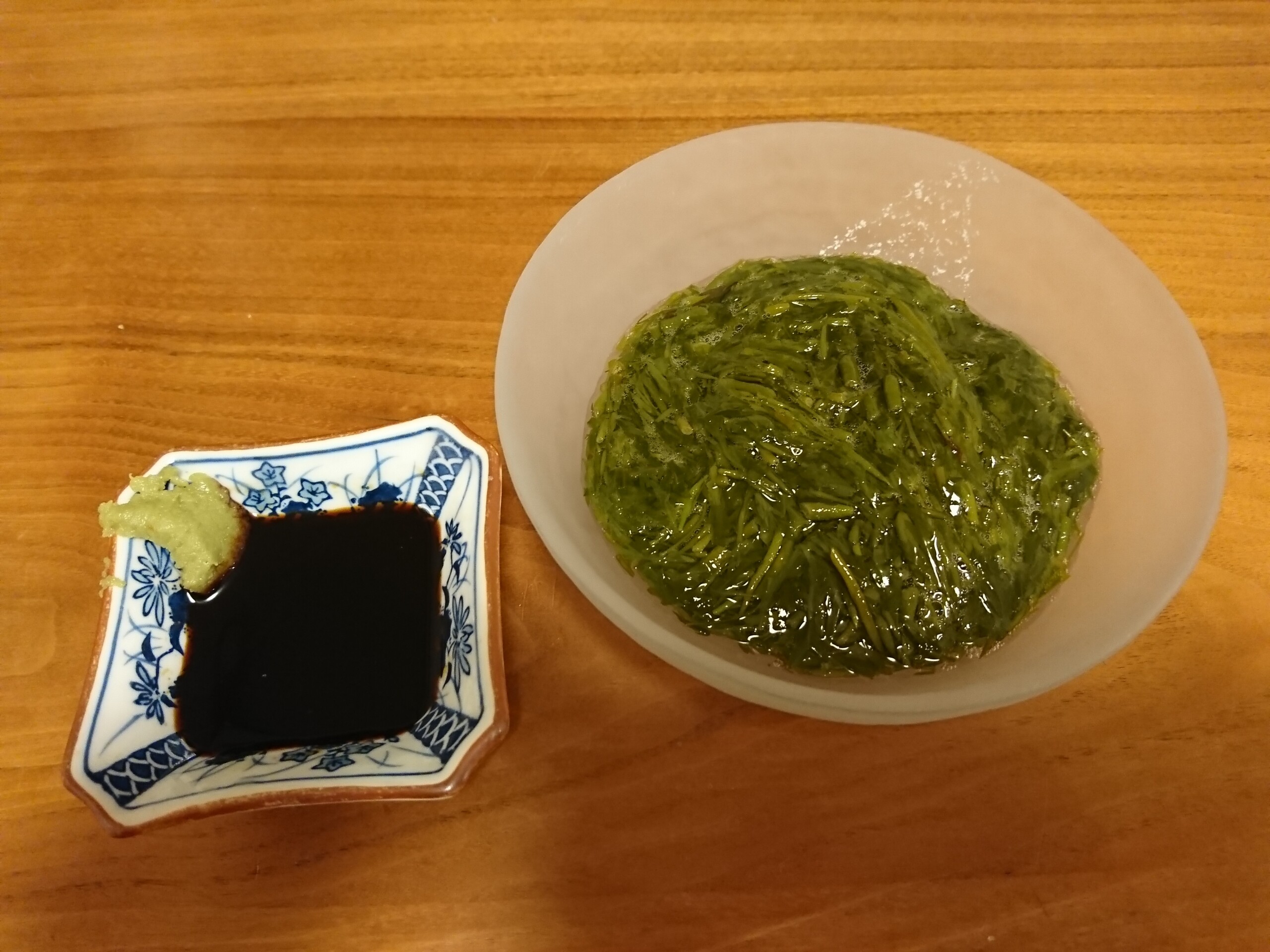 湯通しして加熱処理されてるのでそのまま食べれるみたいなのでわさび醤油で頂きました。食べた感想はシャキシャキネバネバした食感で癖が無くほのかに甘みみたいなのと海藻の旨味があってわさび醤油との相性が良く美味しかったです。
