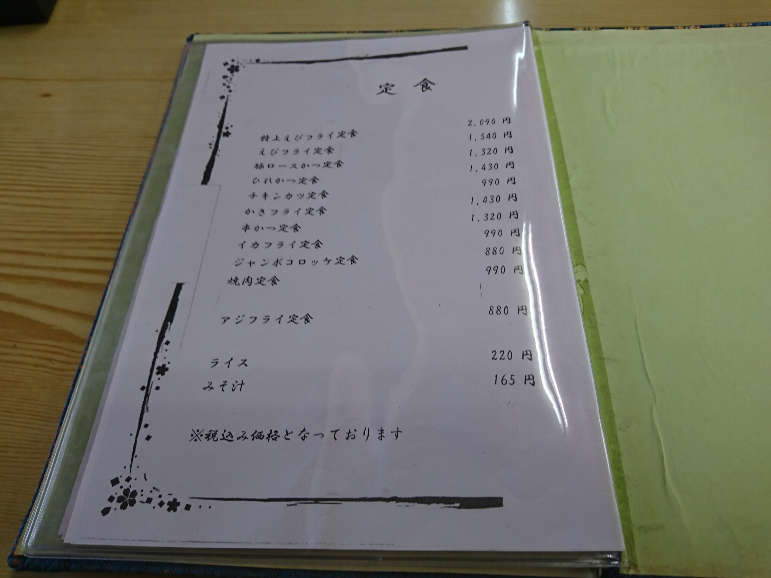 ここのドライブインのメニューは定食のみで麺類や丼物などはありません。