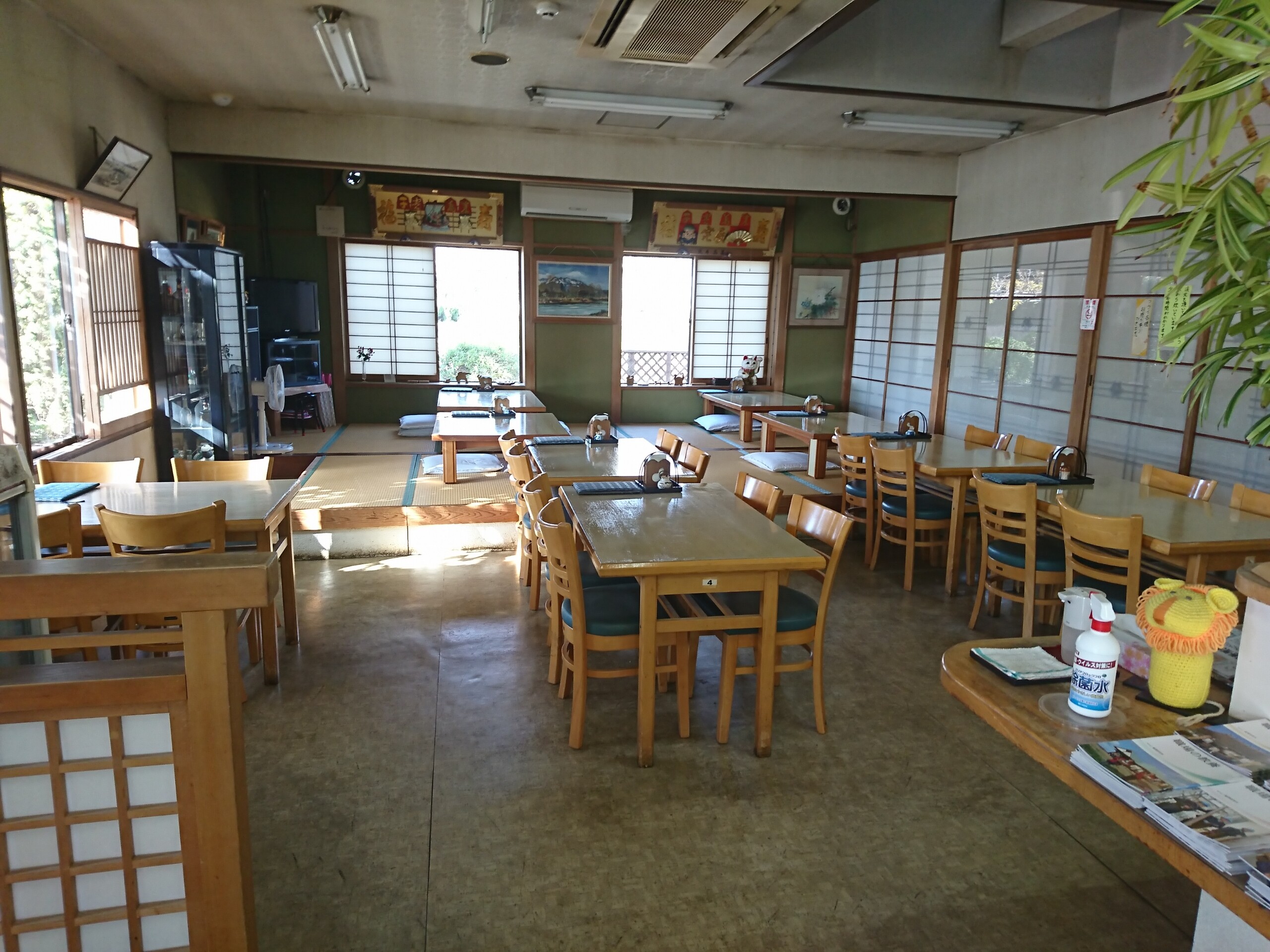 店内はこんな感じで4人掛けのテーブル席が5席に座敷席が4席ありました。障子の引き戸の奥には大人数用の大部屋があります。