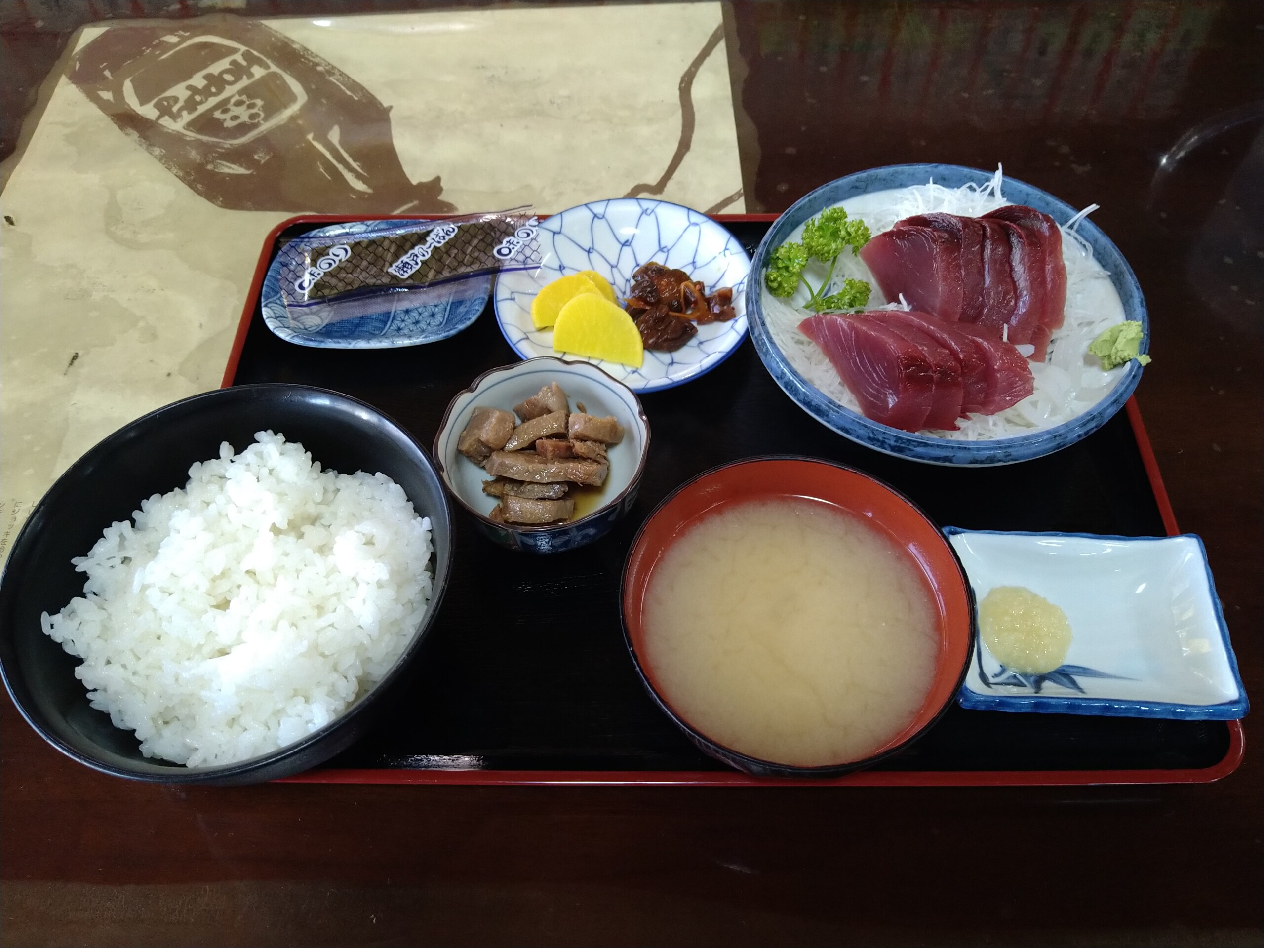 やっぱりここのかつおの美味しさは忘れられないので、かつお刺身定食(1300円)を注文しました。前回はニンニク醤油漬けを食べたので今回は刺身にしました。