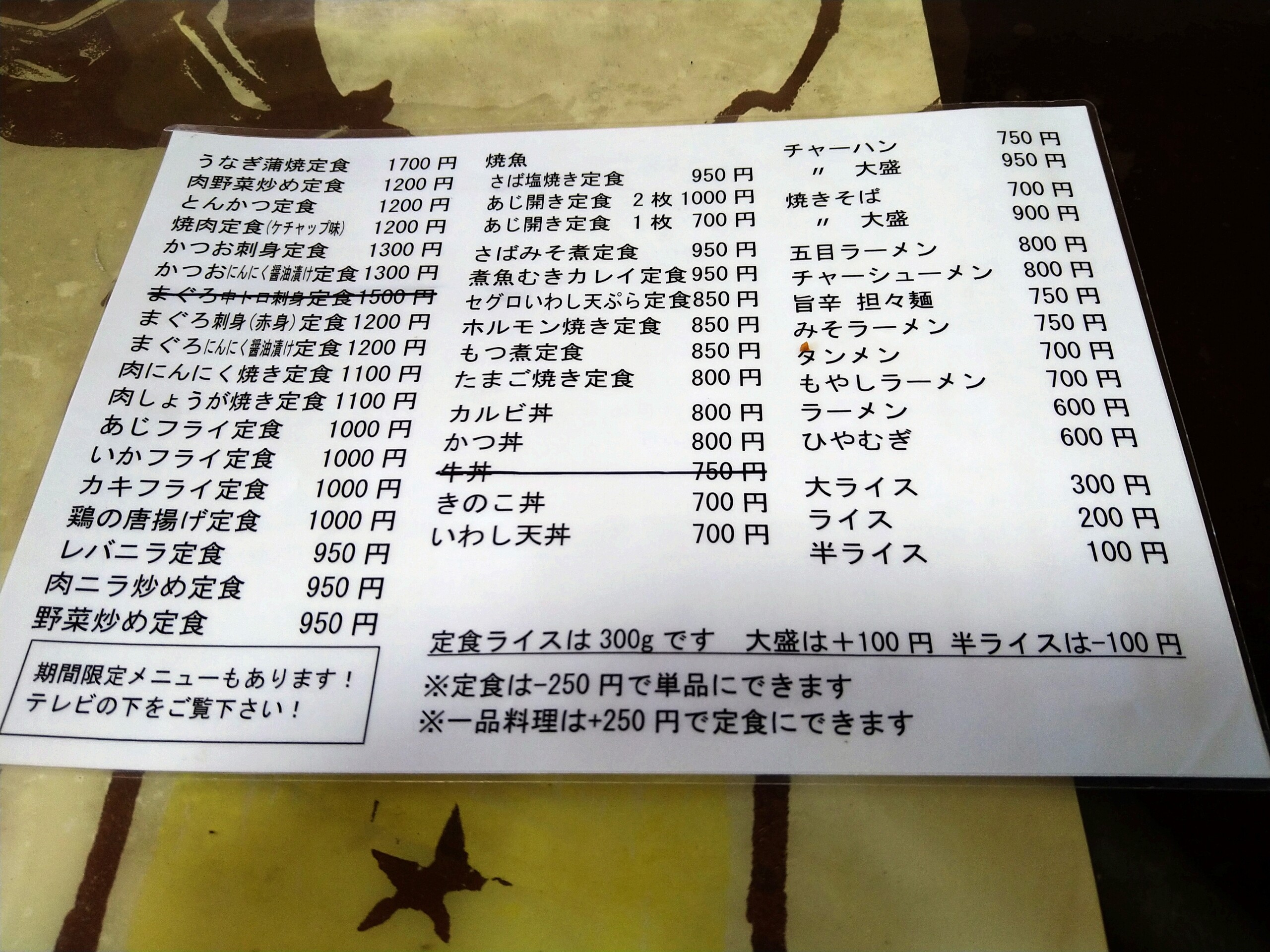 メニューです。前回行った2年前から全体的に値上がりしていました。